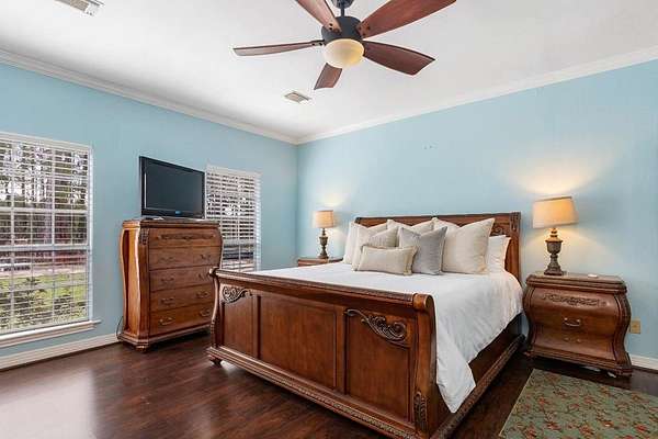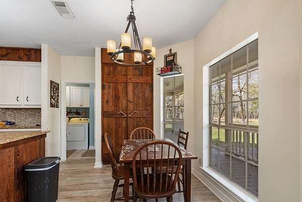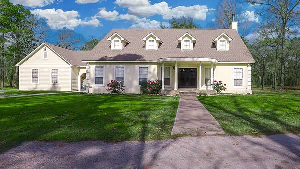 Est $3,791/moCharming country home situated on 20 beautiful acres with scattered mature trees providing privacy and peaceful surroundings. This spacious property features 3 bedroom 3 full bathrooms and 2 half baths, formal dining area, Family room, and upstairs office/storage room. Concrete drive from highway to attached garage and carport. Plenty of acreage to ensure no neighbors are close. Property has Pond with overflow steam behind house.