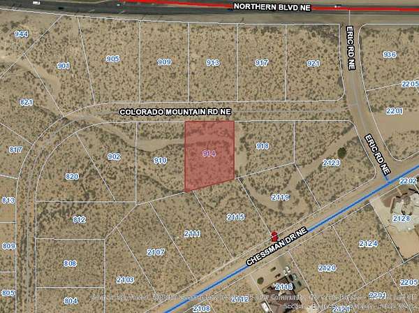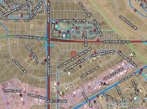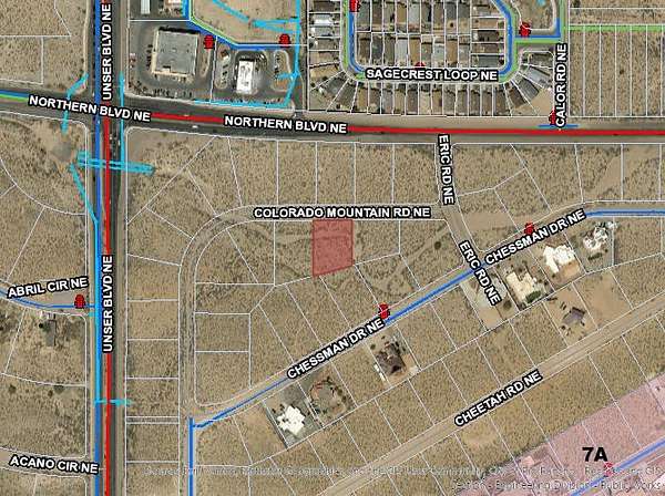 Est $215/moInteresting Strategic Investment - a half acre of land sandwiched between the major intersection of Unser and Northern Blvd NE and custom home subdivision. Arroyo water diverted, no longer in the designated floodplain. Currently Zoned R-1, parcels across the street Zoned C-1, hints bigger upside potential or use as a homesite one day as development and improvements expand and spread. Not a drive by, wear your land shoes and be prepared for a short hike to view the property.