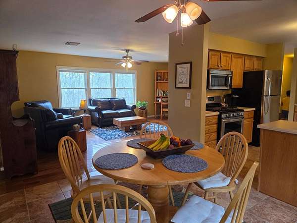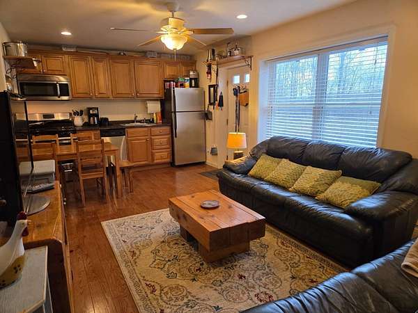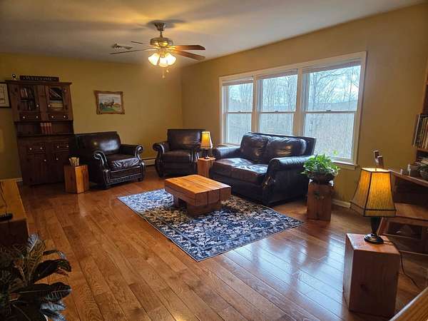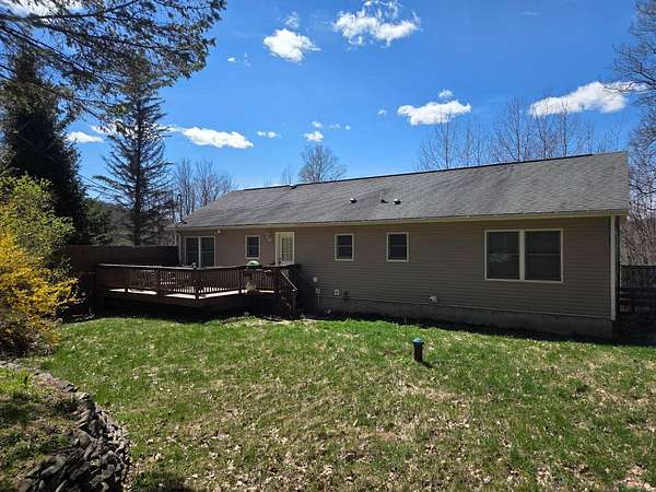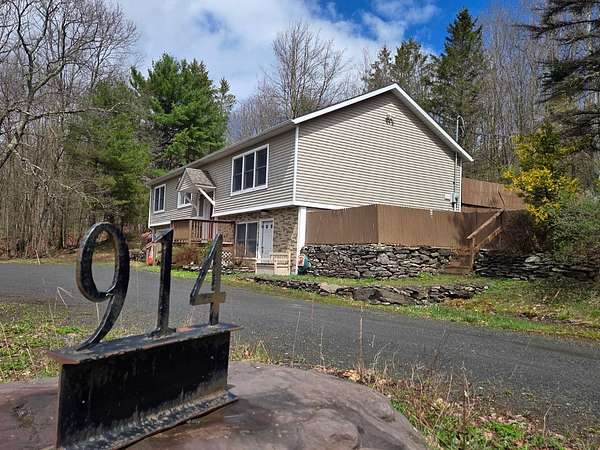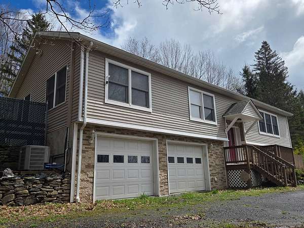 Fully furnished split-level home on 5.3+/- acres in the Catskill Mountains, offering mountain views, a small pond and a private, peaceful setting. Located in the Towns of Middletown and Roxbury, Delaware County. This property is just minutes from numerous restaurants, golf, Catskill Recreation Center and approximately 10 minutes to Belleayre Mountain and Pine Hill Beach. This main level features a bright and comfortable layout with hardwood and ceramic flooring throughout, along with carpeting in the bedrooms. A spacious living room with large windows takes in the surrounding mountain views, while the kitchen with wood cabinetry and stainless steel appliances opens to a dining room and rear deck-ideal for enjoying the outdoor setting. The primary bedroom includes a full bath and ample closet space, with two additional bedrooms and a full hall bath completing this level. The finished lower level has its own private entrance and provides additional space, ideal for guests. This level also includes a large open area, two bedrooms, a laundry area, and access to the attached two-car garage. The attached two-car garage is set up for hands-on use with work benches, machines and equipment, which may be included subject to negotiation. Additional features include a rear deck and side deck, poured concrete foundation, three-zone forced hot air gas heat, gas hot water heater, 200-amp. electrical service, asphalt roof, vinyl siding, well and septic. A storage shed suitable for lawn equipment or recreational vehicles, along with a smaller garden shed, are also located on the property.