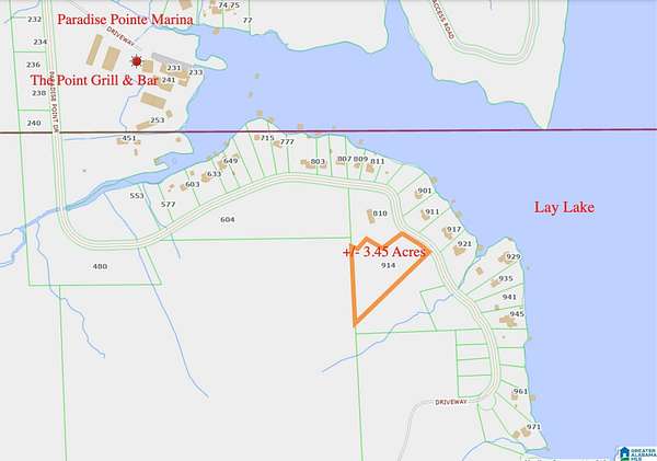 Est $340/moThis 3.45 acre lot has beautiful views of Lay Lake. Water access is just around the corner. It is just a minute from Paradise Point Marina and Restaurant. Come with your plans and build your dream home overlooking Lay Lake. Only about 30 minutes to I65 and 20 min to Hwy 280.