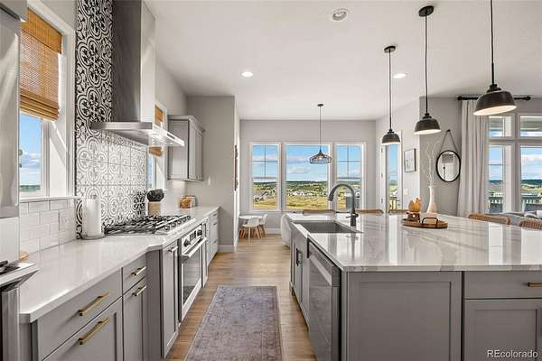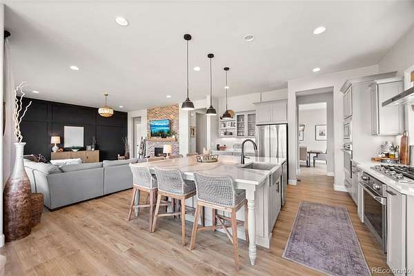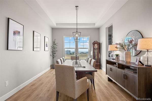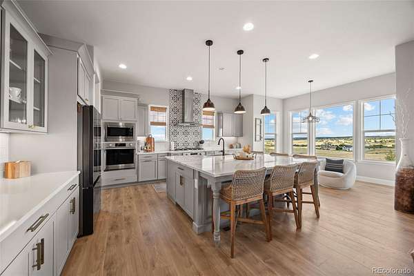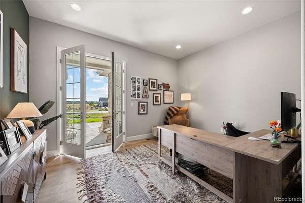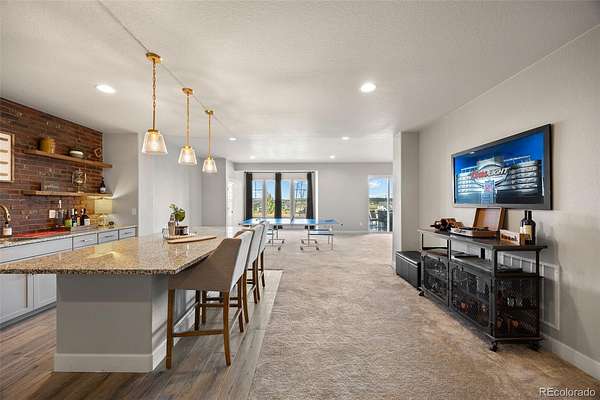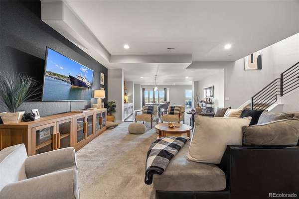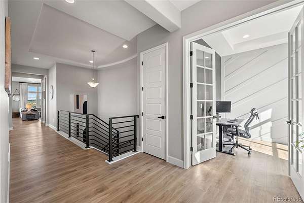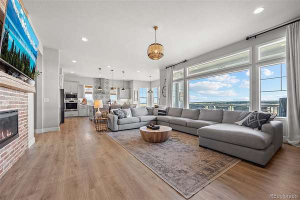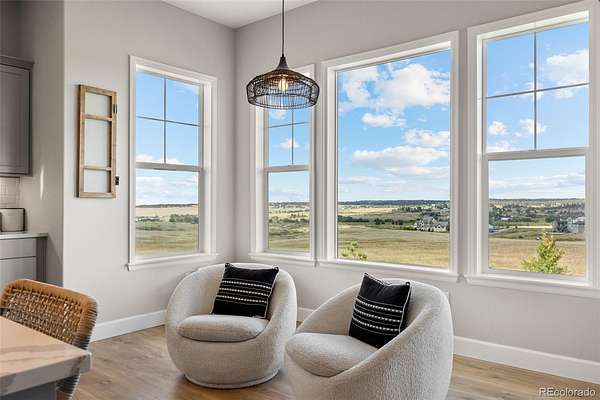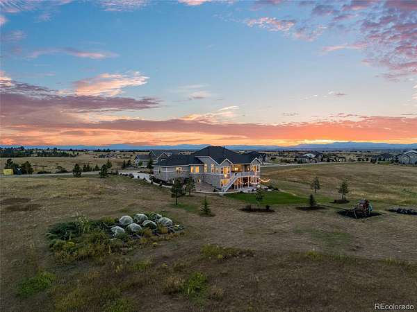 Built in 2022 on 8 private acres in the coveted Two Bridges community, this 6,162 SF walkout ranch offers panoramic Front Range views, a finished lower level with theater, gym with sauna, and wet bar, and the ability to add future outbuildings, all just minutes from Parker.