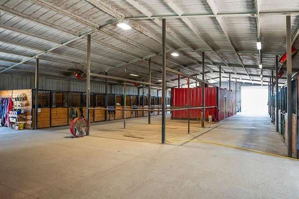 Show Barn is 68x230: Spray-foam insulated with 27--12x12 stalls, 3 wash racks, tack room, feed room, office, and 2 restrooms.