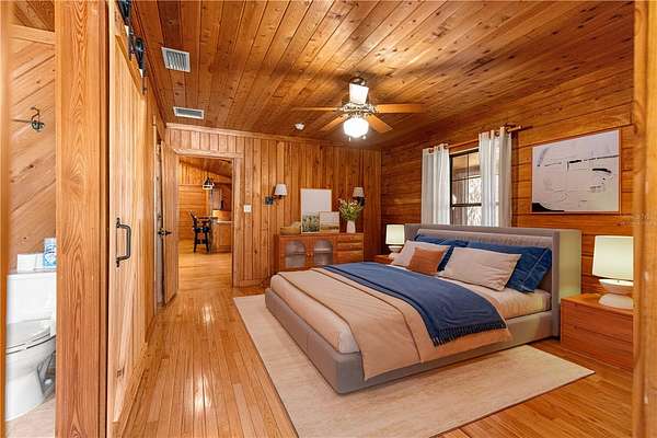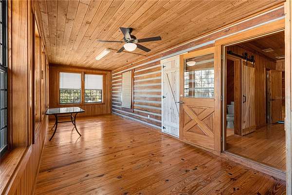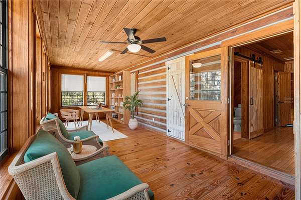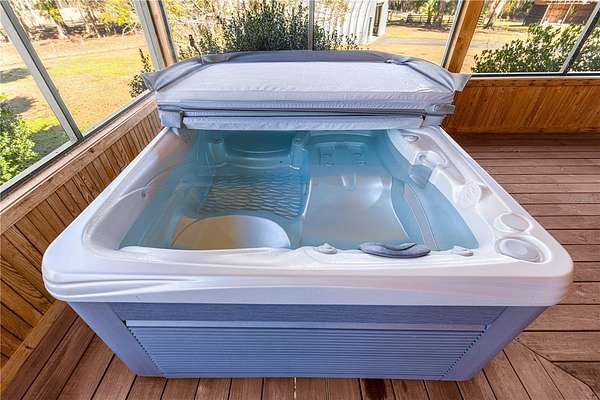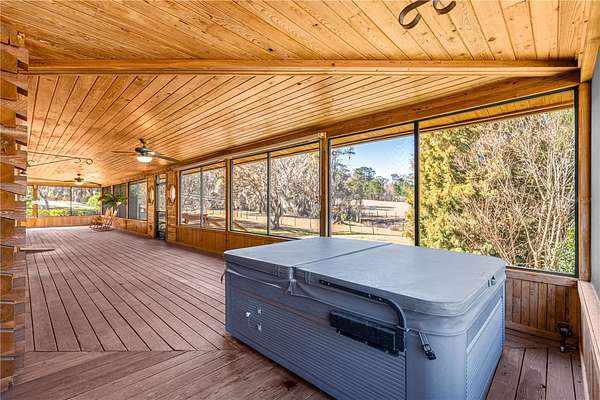 Nestled in a serene private setting, this property fearures a charming 2/2 cypress log home with a versatile bonus room perfect for guest bedroom, art studio, home office, or hobby space. The cozy construction offers rustic warmth and timeless appeal, while the wrap-around porch invites you to relax and enjoy the stunning panoramic views-complete with a new 3 person hot tub for ultimate outdoor enjoyment. Another added feature is the brand new whole-house generator (2025) that give you that sense of security. Completely remodeled kitchen,new gutter system,new A/C,new 1.5 horse well pump,electrical panels upgraded,new appliances,and so much more!