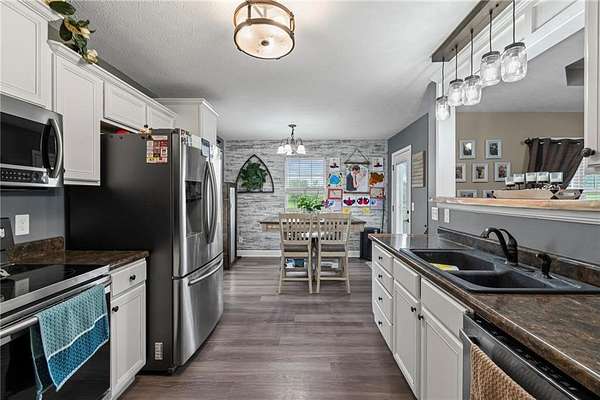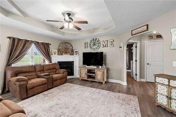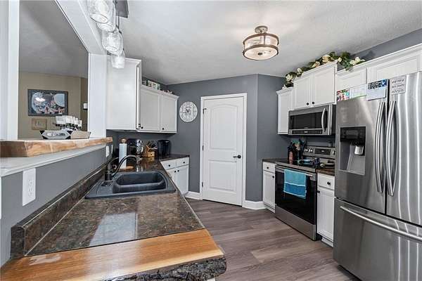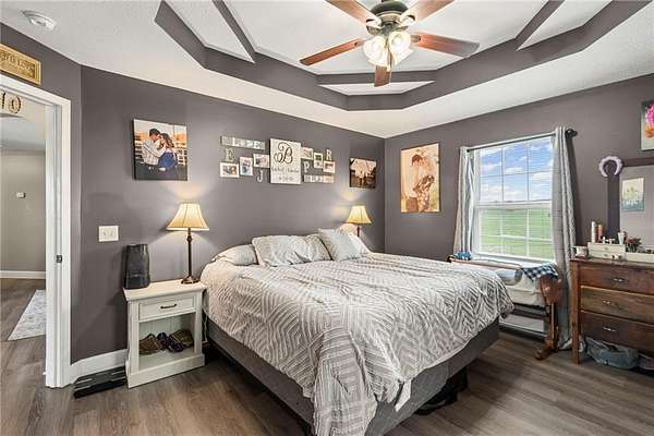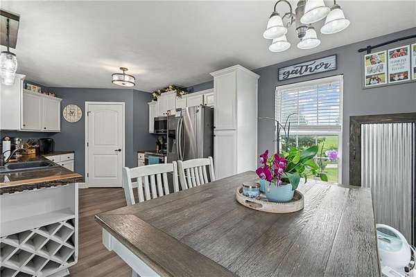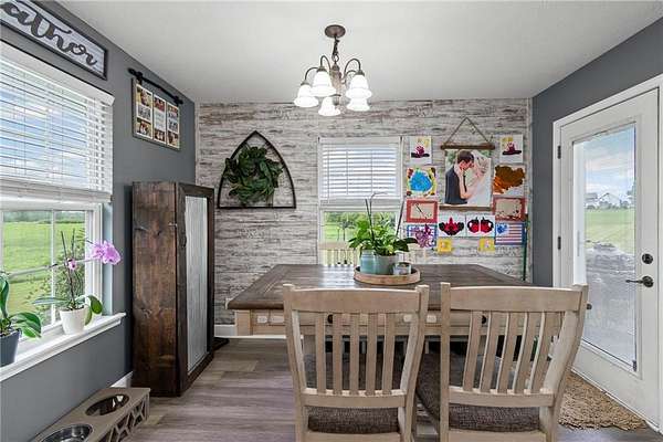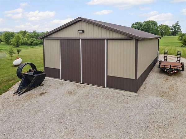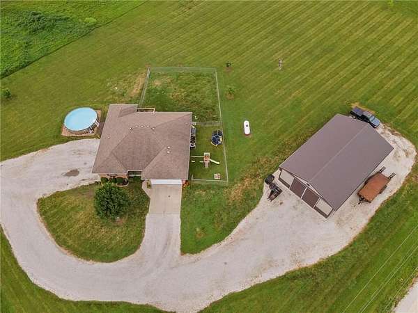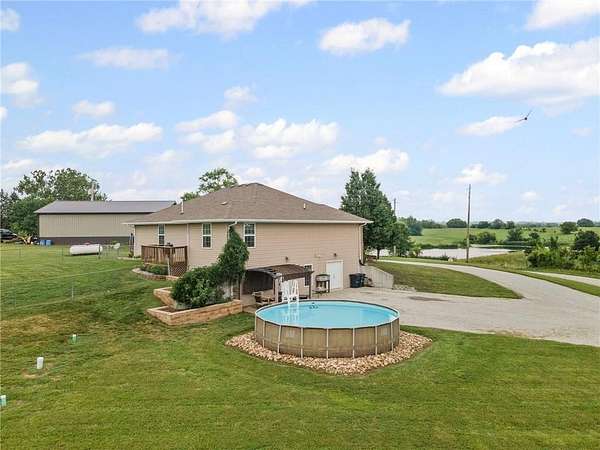 Beautiful ranch home on 9 peaceful acres, perfect for the remote worker with fiber internet and a beautiful lake view! Conveniently located one mile from 210 Highway and a short distance into Richmond city limits, this home offers a cozy layout with an open living room with gas fireplace, main level primary bedroom/bathroom, laundry and two additional bedrooms and bathroom. Walkout basement is finished with extra living space, an office, wet bar, third bathroom and 4th non-conforming bedroom. Additional unfinished storage space available in basement for lawn mower and other storage needs. Property also features a 30X48 detach shop that's insulated with concrete floors, electric, and a loft for extra storage needs. Don't miss out on this rare piece of country paradise!