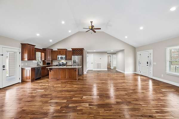 Spanning nearly 3,000 square feet, this thoughtfully designed home features four bedrooms and three full baths. The main level offers three spacious bedrooms, including a well-appointed primary suite, while upstairs you’ll find an additional bedroom and an expansive bonus room, perfect for a media room, home office, or private guest retreat.