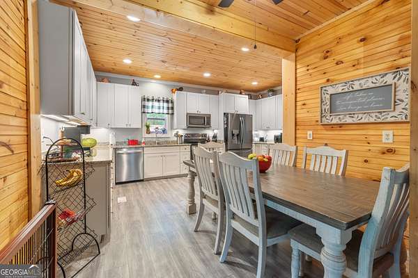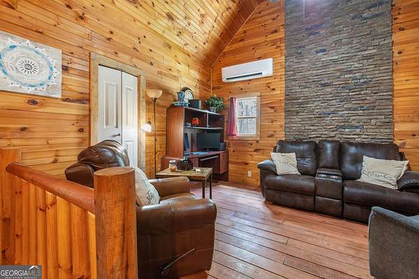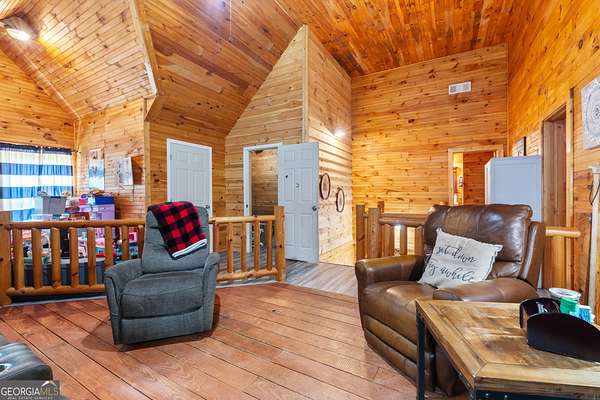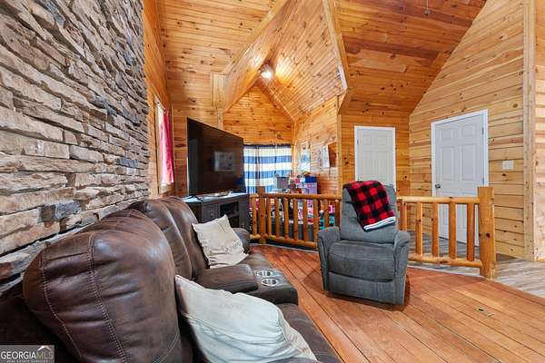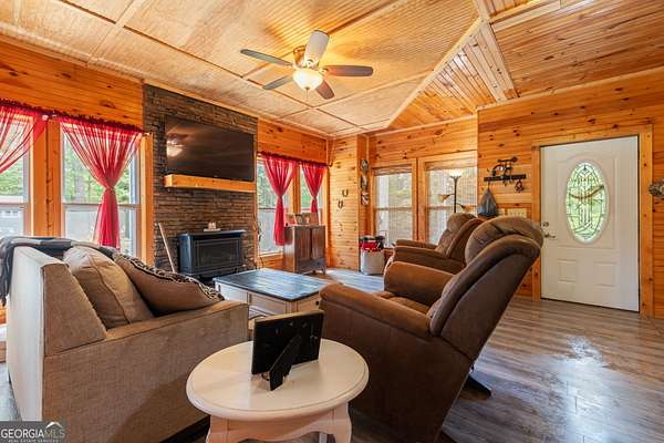 Welcome to your private mountain sanctuary! Nestled on over 5 acres of wooded serenity, this charming 3-bedroom, 2-bath home perfectly blends rustic warmth with modern updates-offering the ultimate North Georgia retreat. Step onto the inviting front porch and instantly feel at home. Inside, you're greeted by vaulted pine ceilings, a stunning floor-to-ceiling stone fireplace, and rich wood textures that radiate cozy cabin vibes. Sunlight pours in through oversized windows, highlighting the beautiful living space designed for both comfort and connection. The updated kitchen is a true highlight-blending farmhouse charm with modern convenience. With sleek appliances, ample counter space, and room for entertaining, it's ready for everything from quiet mornings to holiday feasts. The main-level primary suite offers peaceful views and a beautifully updated bathroom. Two additional bedrooms and a second full bath give you all the space you need for family, guests, or even a home office. Step outside to soak up the mountain air-whether you're relaxing on the porch, playing in the yard, or exploring your wooded acreage. There's even a fenced area perfect for pets or gardening. Located in the desirable Batesville area you're minutes to Lake Burton, Clarkesville and Helen. Don't miss your chance to own this peaceful, move-in-ready mountain home with room to roam. Whether you're starting your homestead dream or looking for a peaceful retreat-this is the one!