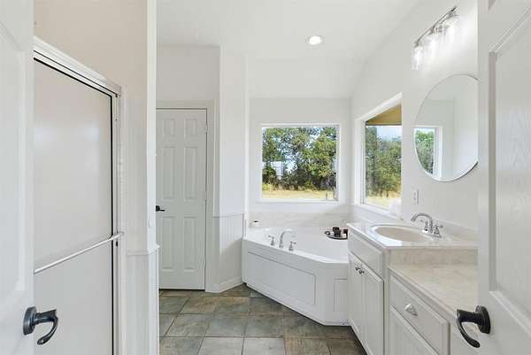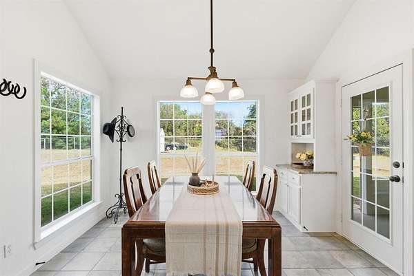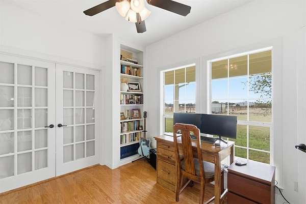 Dream country living on 6 acres in Tolar, Tx! This adorable modern farmhouse features soaring vaulted ceilings and walls of windows that frame peaceful views from every angle. The large living room is anchored by a stunning floor-to-ceiling stone fireplace. The gorgeous open kitchen is a showstopper, boasting two spacious islands, custom cabinetry, and warm wood floors that flow throughout the home. The primary suite is a sanctuary of its own with expansive windows and private access to the wraparound porch, perfect for sunrise coffee or evening sunsets. Both secondary bedrooms offer custom built-ins and generous walk-in closets. A spacious office and an enclosed back patio add even more functional living space. The property is fully set up for your western lifestyle with a brand-new roping arena completed this week, a turnout with loafing shed, and complete with an automatic gate. Move-in-ready for you and all of your animals. Incredible sandy loam soil and usable land. Great location just North of Tolar.