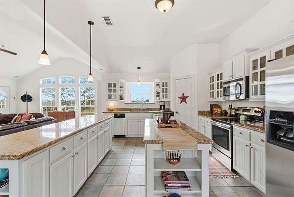 - Built-In Features, Cathedral Ceiling(s), Decorative Lighting, Granite Counters, Kitchen Island, Open Floorplan, Vaulted Ceiling(s), Walk-In Closet(s)
