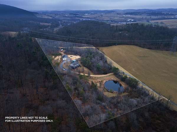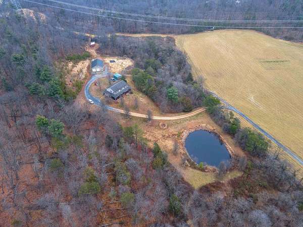 Come home to this picturesque farmhouse style retreat conveniently located on 11 acres. The home is elevated to take advantage of the views of the Blue Ridge that overlooks the acreage and stocked pond. This property is conveniently located, and offers a peaceful country setting with open areas, some woods, & garden space. As you arrive at the property, you notice the welcoming wrap around porch and just want to sit and stay a while taking in the views. Inside, the home, you walk into generously sized rooms filled with natural light, original wood floors, and a warm and inviting floor plan. The detached two to four car garage/workshop offers flexibility for your personal hobbies. The workshop has roughed in plumbing for a full bathroom and a walk up floored attic. This property is special and offers flexible opportunities to finish the basement, hobby farm, garden, fish, star gaze or simply just relax. Back building is being used as chicken coop.