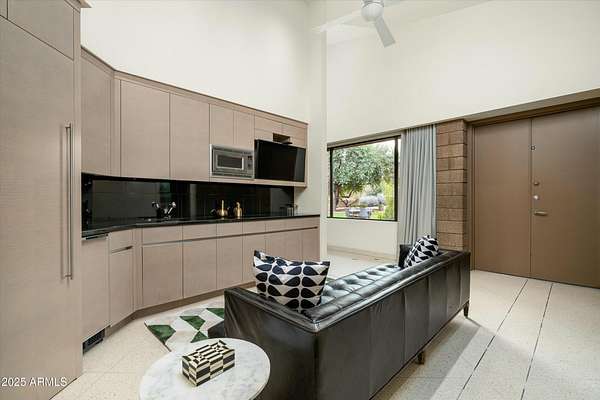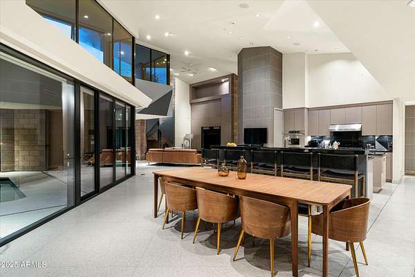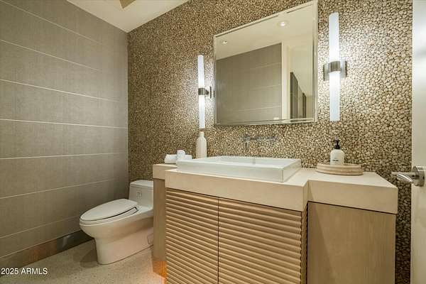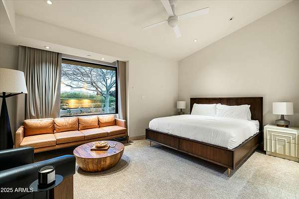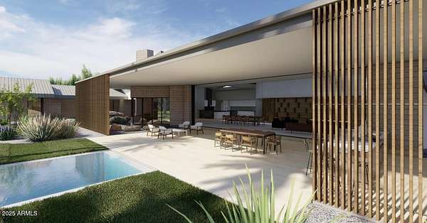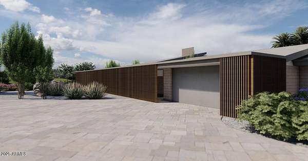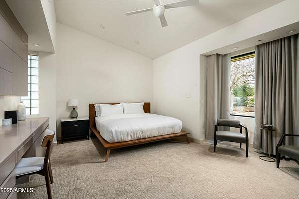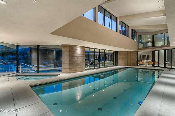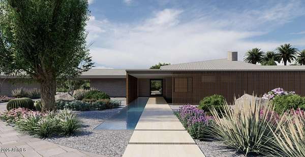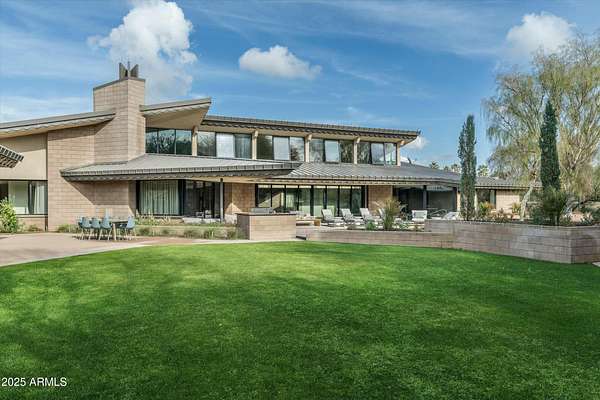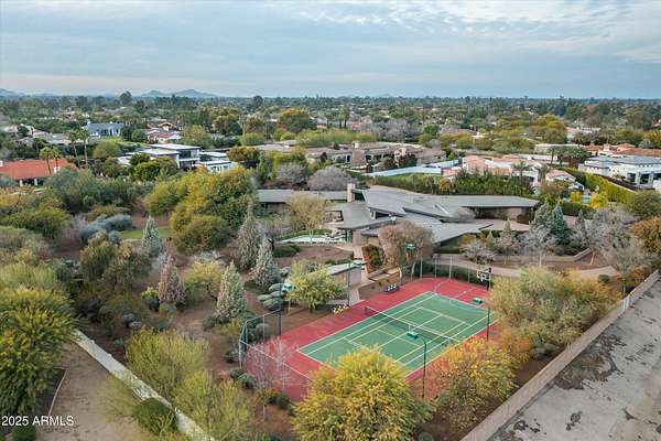 Experience Architectural Brilliance in the Heart of Paradise Valley! Step into a world of inspired design and unmatched elegance in this privately gated 2.5-acre estate-a true architectural gem that pays homage to Frank Lloyd Wright's organic principles. Envisioned by Taliesin-trained architect Gustad Irani and expertly brought to life by award-winning La Casa Builders, this residence is a rare blend of form and function. Thoughtfully designed with a modernist vision, the home showcases luxurious and refined finishes-from zinc-inlaid terrazzo floors to bespoke Fiddleback English Sycamore cabinetry. Striking geometric lines and thoughtfully selected materials establish a warm yet sophisticated atmosphere across 7,041 square feet of interior living space, including a 1,291-square-foot detached guest house with two en-suite bedrooms, a full kitchen, living room, laundry, and its own 2-car garage. The main residence features 6 bedrooms, 8 bathrooms, and a 6-car garage, with the primary suite offering a private office, exercise room, and tranquil views of the indoor therapy pool. A separate guest wing within the main house includes two en-suite bedrooms, a private living area, and a kitchenetteideal for multigenerational living, long-term guests, or live-in support. Resort-style outdoor living is reimagined with a heated indoor lap pool, a reflecting pool, and spaall set amid lush, mature landscaping that blurs the lines between interior and exterior spaces. The grounds are complete with a north/south-facing tennis and pickleball court, putting green, and generous entertaining areas designed for year-round enjoyment. Whether enjoyed as a primary residence or held as a rare investment, this architectural masterpiece embodies timeless elegance and intentional design at every turn.