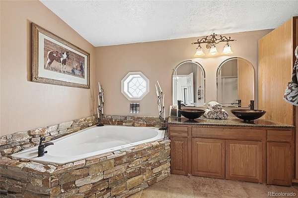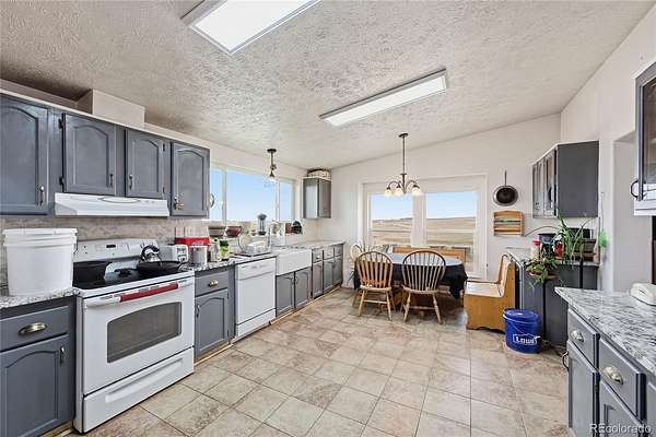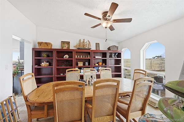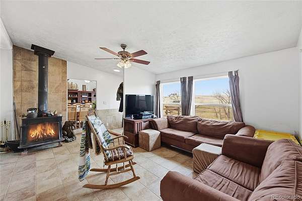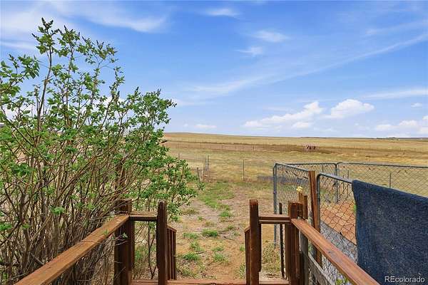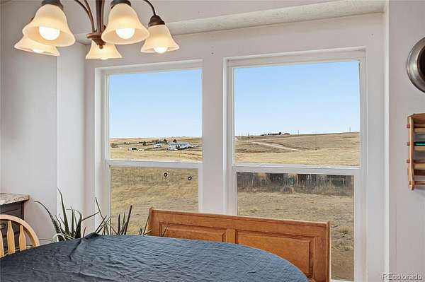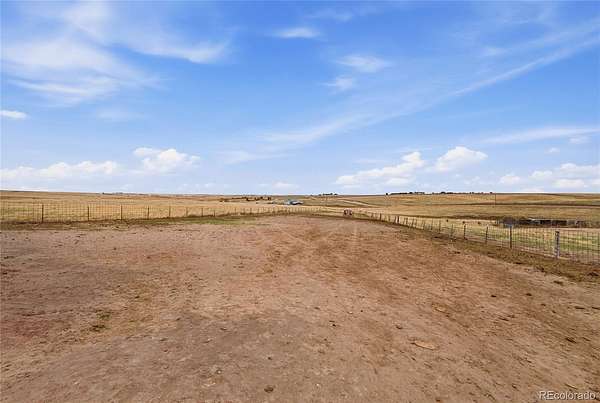 Escape to peaceful country living on 35 wide-open acres at 9151 Sun Country Drive in Elizabeth, where endless prairie views, big skies, and quiet surroundings create the perfect rural retreat. This property offers the space, privacy, and freedom many buyers are seeking, while remaining within convenient reach of Elizabeth and nearby amenities. Step inside to a comfortable and functional layout filled with natural light. The main living area features large windows overlooking the surrounding countryside and a cozy wood-burning stove, creating a warm and inviting space during Colorado’s cooler months. The kitchen offers generous cabinet and counter space along with a dining area ideal for everyday living or hosting gatherings with family and friends. The primary suite offers a relaxing retreat, complete with a distinctive ensuite bathroom featuring a stone-accented soaking tub, dual vessel sinks, and ample vanity space perfect for unwinding after a long day. The finished lower level adds valuable living space, with a large family room featuring a second wood-burning stove that provides additional warmth and character. This level also includes additional bedrooms and flexible space for guests, hobbies, recreation, or a home office. Outside is where this property truly shines. With 35 acres of open land and expansive prairie views, there is ample room for animals, equipment, outdoor projects, or simply enjoying the peace and quiet of rural Colorado. The deck provides the perfect place to relax with your morning coffee or take in beautiful sunsets. Recent improvements include a new impact-resistant shingle roof, new gutters, and a new hot water tank, adding peace of mind for the next owner. Home also has high-speed fiber. Horse Amenities: Barn, triple-wide horse shed, mini pens with shelters, 100x100 arena, round pen, roundabout, dry lots, pasture, fenced and cross-fenced areas with hydrants. Additional space for horse amenities. Two chicken coops and a turkey coop.