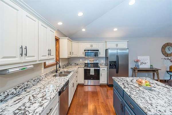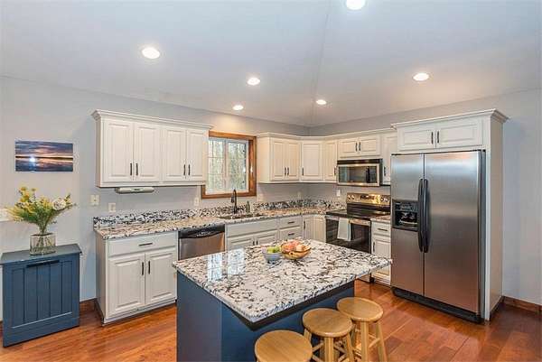 Hard-to-find 5-bedroom, 3 bath home offering 3,000+ square feet on 2.5 acres in a quiet cul-de-sac just on the outskirts of town. This property delivers the best of both worlds—privacy and space with the convenience of being close to everything. Inside, you’ll find a spacious layout with a walkout basement, an updated kitchen featuring granite countertops and stainless steel appliances, and great natural light throughout. Outside offers a large paved driveway, attached 3-car garage, plus a 28x30 detached garage—ideal for storage, hobbies, or extra vehicles. Newer roof and a beautiful wooded setting make this one stand out.