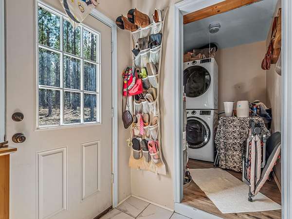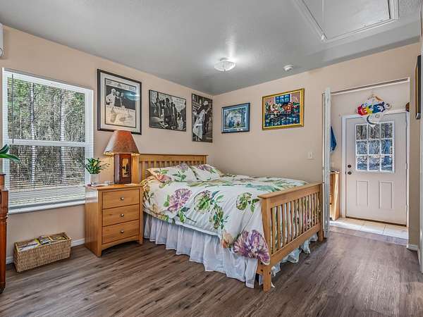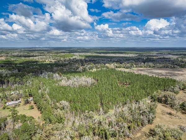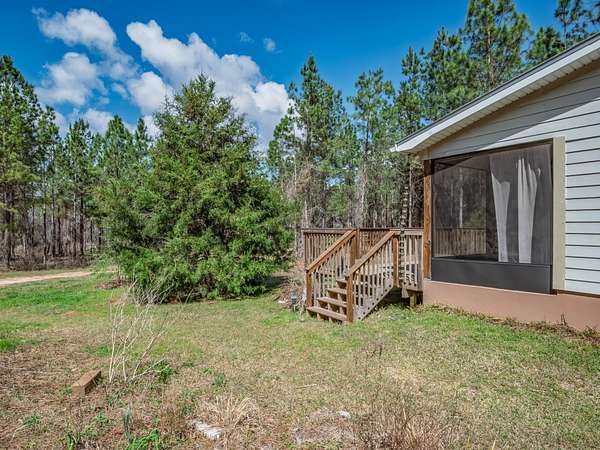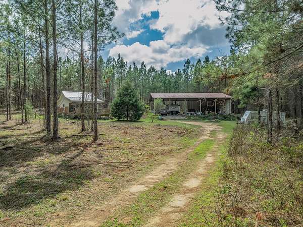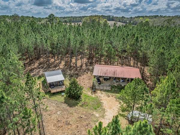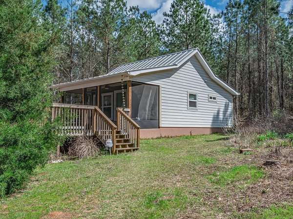 Nestled among towering pine trees on 35.70 acres, this charming 2021-built cabin offers privacy, natural beauty, and endless possibilities-with no HOA and no flood insurance required for the home. A long, private, cleared driveway welcomes you in, setting the tone for this peaceful retreat. The home features an open floor plan, walk-in closet, indoor laundry room with storage, and a beautifully tiled shower. The custom kitchen includes light wood cabinetry extending to the ceiling for generous storage, stone-look countertops, floating shelves, and a double stainless steel undermount sink. Enjoy the peaceful surroundings from the large screened porch and attached elevated wooden deck-perfect for relaxing or entertaining while overlooking the wooded landscape, native wildflowers, and a variety of fruit trees including fig, pear, and peach. The property also features a 40x60 barn with water and electricity, partially enclosed with a concrete floor, offering ample space for vehicles, equipment, or workshop use. An RV hookup is already in place. With abundant wildlife, timber rights, and the ability to divide the land, this property offers incredible flexibility-build your dream homestead, create a multi-generational setup by using the cabin as a guest or in-law suite, or explore income-producing opportunities such as a short-term rental. Ideally suited for a private estate, recreational retreat, or weekend getaway, all while being conveniently located near Tallahassee.