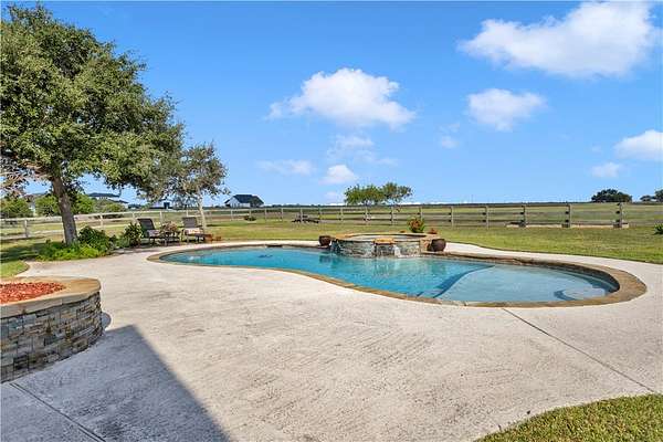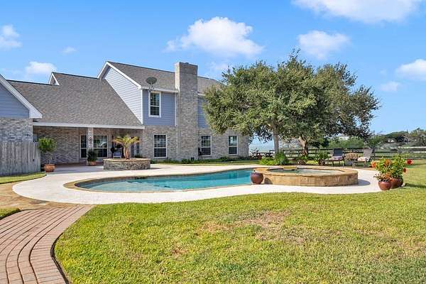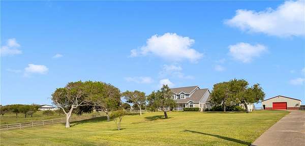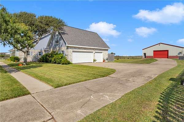 Welcome to this stunning one-owner, custom-built estate nestled on 2 beautiful acres, offering the perfect blend of country living and timeless elegance. Designed with comfort and entertaining in mind, this home features four generous bedrooms, a warm and comfortable office, and a large bonus room that is ideal for a fifth bedroom or game room. The thoughtful split-floorplan provides both privacy and flow, featuring a spacious great room, two dining areas and a large chef''s kitchen complete with a walk-in pantry-perfect for hosting gatherings or entertaining guests. This home also features two separate staircases that add both functionality and charm. The primary suite is a private retreat with a spa-like bathroom, offering the perfect space to unwind at the end of the day. Step outside to a covered patio overlooking the resort-style pool and lush, manicured landscaping-a true outdoor oasis. Beyond the pool, you''ll find a massive 2,400 sqft barn/workshop, providing endless possibilities for hobbies, storage, or business needs. This exceptional property also includes a 30-foot easement with waterfront access, giving the owner the option to build a private pier, boat dock, or lift-the ultimate bonus for those who love life by the water. Experience the best of luxury country living with room to grow, relax, and entertain-all within your own private estate. Property is located just a few miles outside of Portland, and owner has the option to apply to transfer to GPISD! 3 additional acres are available for purchase with an acceptable offer.