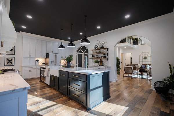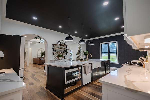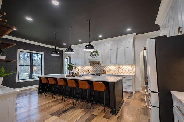- Covered Front Porch, Garden Area, Landscaping, Mature Trees, Outdoor Lighting, Pond(s), Trees