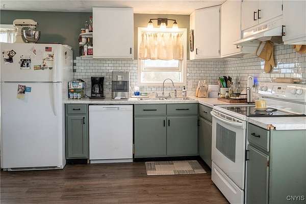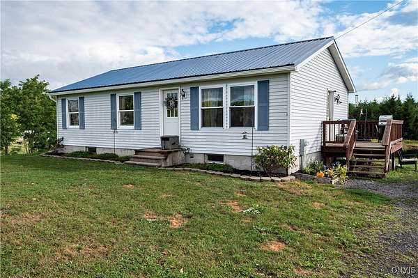 Holland Patent Ranch-Charming 3-Bedroom Ranch in a Peaceful Country Setting Enjoy serene living in this 960 sq. ft. ranch situated on 2.3 acres in the Holland Patent School District. This well-maintained home offers 3 bedrooms, 1 full bathroom, and a spacious country kitchen perfect for family meals. The large living room provides ample space for relaxing or entertaining, while the walkout basement includes laundry and offers potential for additional living or storage space. Plenty of closet space, hot water baseboard heat, recently remodeled, and ready to move in! Step outside to a picturesque landscape of rolling farmland, lush green grass, and your very own pond with an aerator-ideal for peaceful mornings on the deck or fishing afternoons. The property's beautiful country setting offers privacy and tranquility while still being convenient to area amenities. Whether you're starting out, downsizing, or looking for a weekend retreat, this home combines comfort, charm, and a stunning rural backdrop.