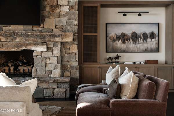 Welcome to Highpine Ranch, a newly transformed mountain estate set on 160 acres of quaking aspen and pine-covered wilderness in the prestigious gated enclave of Wolf Creek Ranch. Spanning 8,800 square feet, the residence was fully remodeled in 2025 with a vision rooted in simplicity, scale, and refined materials. The heart of the home is a striking gourmet kitchen featuring luminous Cristallo quartzite countertops, known for their rare translucent clarity and organic veining. Custom White Oak cabinetry by Mar Wood pairs with a full suite of Wolf and SubZero appliances, elevating both utility and design. Five en-suite bedrooms, including a main-level primary suite, offer privacy and comfort, while wide-plank floors, sleek new fireplaces, and curated lighting throughout bring quiet sophistication to every room. Technology and nature harmonize through a full AVS audio/video integration and Ketra dynamic lighting, which adjusts throughout the day to mirror natural daylight. Outdoors, expansive decks frame commanding views of Mt. Timpanogos, stretching across ridgelines and into protected wilderness. A heated barn enhances the property's versatility, with storage for up to 10 vehicles, a charming guest apartment, and direct access to private trails. Whether hosting, relaxing, or exploring, Highpine Ranch offers an extraordinary balance of architectural integrity, natural beauty, and quiet luxury, set within one of the Mountain West's most celebrated private land holdings.