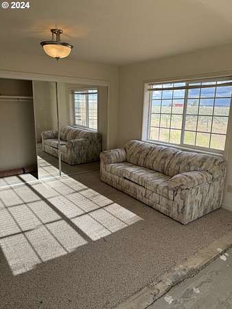 Oasis in the Desert w/Panoramic views! This 2,272 sq ft, 2 bed/3 bath, 1-story house sits on 159 acres. Numerous outbuildings including a large 2 door detached machine shop with an additional space for equipment or an RV, and a small corral that was used for cattle at one point. Make this a primary residence, vacation getaway, or farm with endless possibilities for outdoor enjoyment, whether you envision a thriving garden, 4H animals, or need a space to build more shops, this property has the room and is well suited for horses or livestock. Enjoy sitting around a fire pit and enjoying the peace and quiet. A great recreation area w/plenty to do & see, great hunting & fishing area w/3 close reservoirs, perfect for bird watching, and star gazing too. Video security system is active. Come see this beautiful property today.