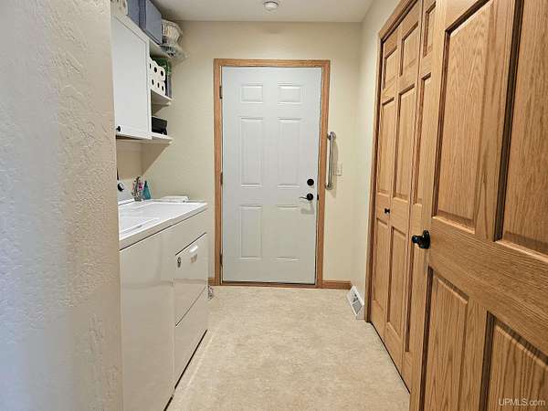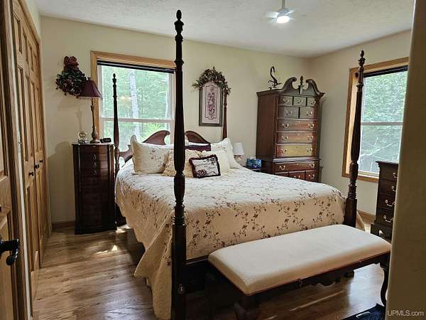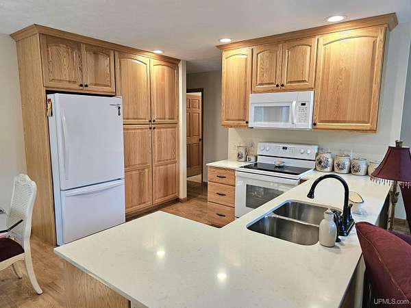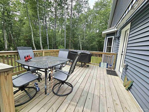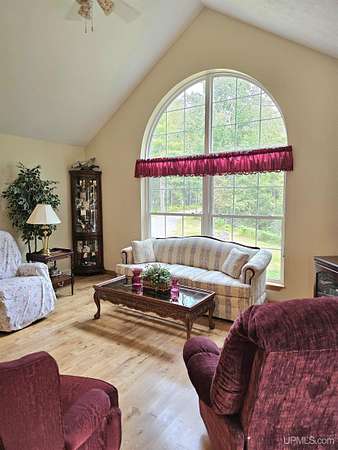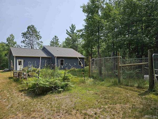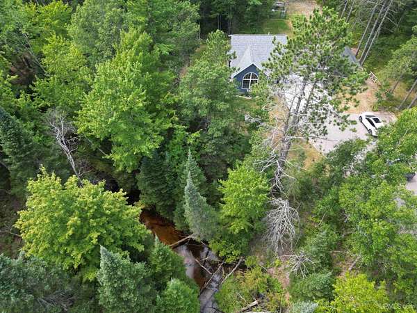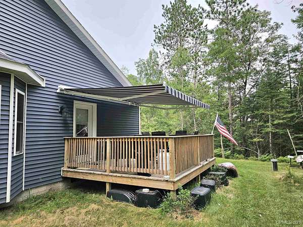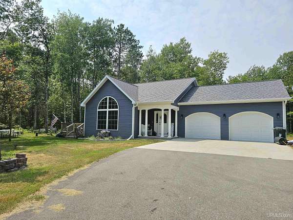 Built by Cross Construction in 2021, this custom home blends thoughtful design with high-quality craftsmanship and modern amenities. Featuring 2 bedrooms and 2 full baths, the home includes a spacious master suite with a beautifully tiled shower. The open living area boasts vaulted ceilings, creating an airy and inviting atmosphere. Solid oak floors, trim, and doors run throughout the home, along with bullnose-finished corners that add a refined touch to the interior. The kitchen is a standout with custom soft-close cabinetry by Cretens Cabinetry and gleaming quartz countertops. Tinted window shades offer comfort and energy efficiency, and everything is conveniently located on the main level—including the laundry room—for easy accessibility. The home is also fully handicapped accessible. Step outside onto the back deck and unwind under the retractable awning while listening to the relaxing sounds of the nearby creek, which flows through the property and into Big Bay de Noc. The 2.5-acre wooded lot offers seclusion, natural beauty, and space for a garden and dog kennel. Exterior highlights include a concrete covered patio, concrete approach, and asphalt driveway, along with an attached two-car garage. Built with Scandia trusses to withstand heavy snow loads, this home is well-equipped for Upper Peninsula living. Additional features include central air conditioning, natural gas forced air heat, an on-demand hot water heater, and a water softener. Located on year-round County Road 513 with quick access to U.S. Highway 2 for shopping and services, this peaceful retreat offers the perfect balance of comfort, convenience, and quality.