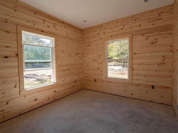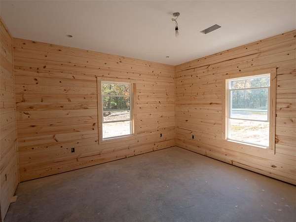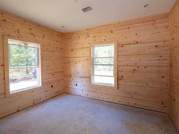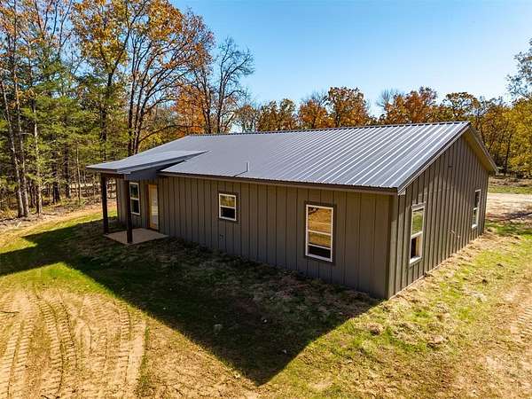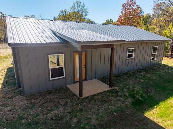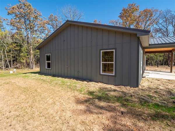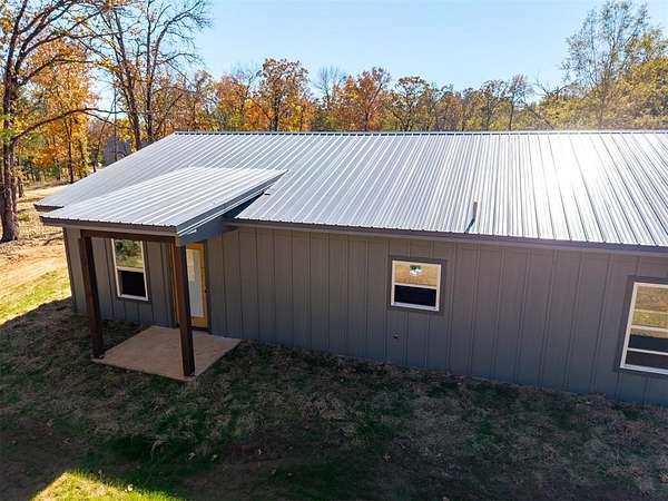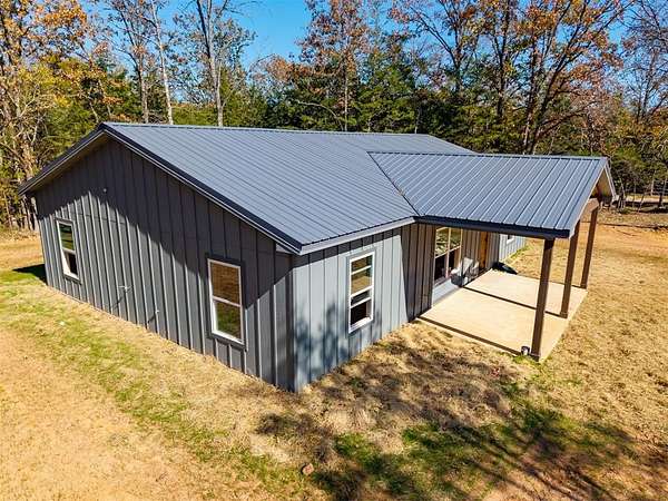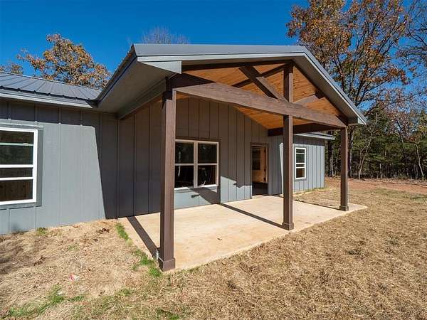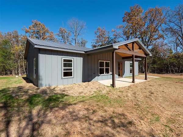 Est $1,682/moThis is a brand new home built by local homebuilder Chester Edwards. The house comes with 3 bedrooms, 2 full bathrooms and open floor plan. This is a 1536 sf home, has a metal roof, bat and board siding. The inside has been finished with pine tongue and groove wood. Includes a nice front gabled porch. The house sits on a 2.5 acre tract of land with plenty of trees on the property. House is located near a boat ramp giving access to Hugo Lake, known for it's reputation as a great Crappie Lake. The house and property is near lots of public hunting land.