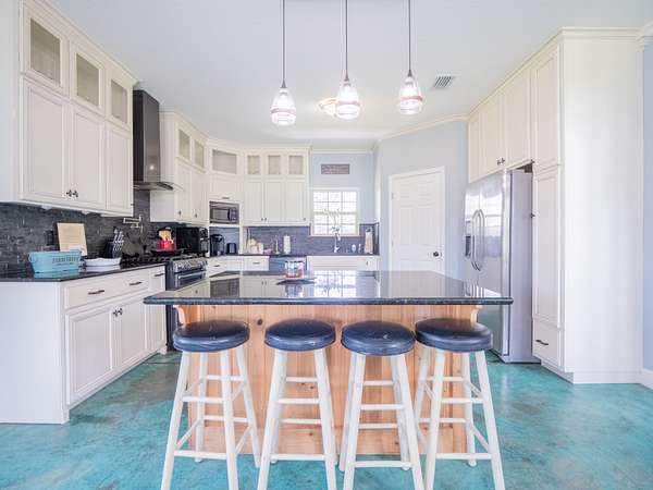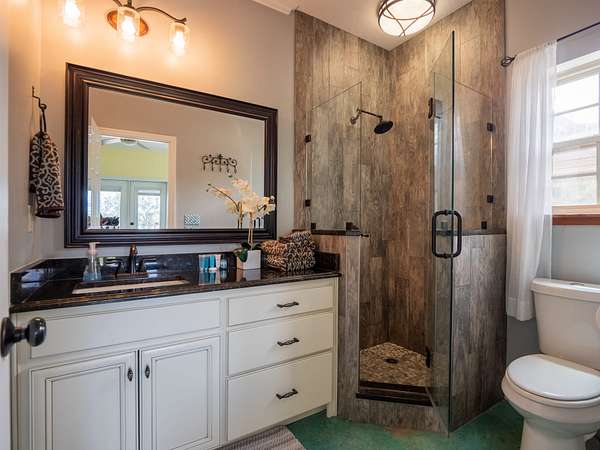 The open-concept kitchen is designed for entertaining and everyday comfort, featuring custom cabinetry, stainless steel appliances, and a walk-in pantry. The main level includes one bedroom and 1.5 bathrooms, a large laundry room, and access to both the back porch and front deck with hot tub--perfect for unwinding while taking in the view.