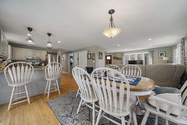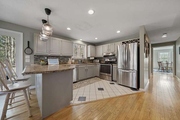 Set on a picturesque 2-acre lot, 916 River Road in Weare offers the perfect blend of privacy, comfort, and classic New Hampshire charm. Surrounded by natural beauty, this inviting home features a bright and open layout designed for both everyday living and entertaining. The spacious kitchen flows seamlessly into the family room and dining area, where French doors lead to a deck overlooking an expansive, level backyard—ideal for gatherings, recreation, or simply enjoying the peaceful setting. A versatile mudroom welcomes you upon entry, offering flexible space for organization or the opportunity to add custom built-ins to suit your lifestyle. The home includes two fully updated bathrooms, thoughtfully renovated and truly move-in ready. Generously sized bedrooms provide comfort and functionality, while beautiful hardwood floors add warmth and character throughout. Extra Storage space on 2nd floor that could potentially be transformed to a 4th bedroom. The cozy family room is enhanced by a pellet stove, providing efficient supplemental heating and a charming focal point during cooler months. Bright dining room is off the kitchen and is being used as a playroom! Downstairs, an amazing finished basement expands your living space, perfect for a media room, home gym, office, or playroom. Backyard offers am irrigation system, Shed for storage and large flat open space! With its modern updates, and versatile spaces, this property offers a wonderful opportunity to enjoy both indoor comfort and outdoor living in a tranquil setting. Open House Saturday 4/4 11am-1pm