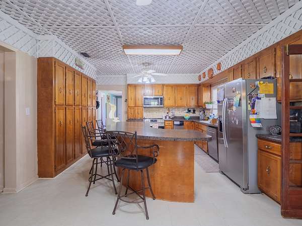 Inside, each bedroom is positioned for privacy, making the layout ideal for families or guests. The home boasts a formal dining room, three expansive living/family rooms, and two cozy gas fireplaces--plenty of room to relax, entertain, or work from home. The large, open-concept kitchen is a dream for any cook, featuring custom cabinetry, stainless steel appliances, and a generous eat-in area.