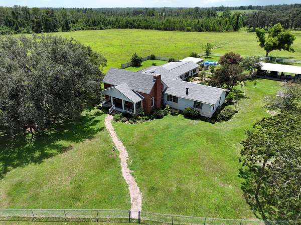 Step outside to enjoy multiple outdoor living areas, including a covered front porch, a large brick patio, an additional covered patio, and a screened-in porch--all overlooking the beautifully maintained grounds. A 3-bay carport, multiple outbuildings, and fenced-in front and back yards offer added functionality. The property is fully perimeter-fenced, with mostly high and dry pasture land ideal for horses, cattle, or agricultural ventures.