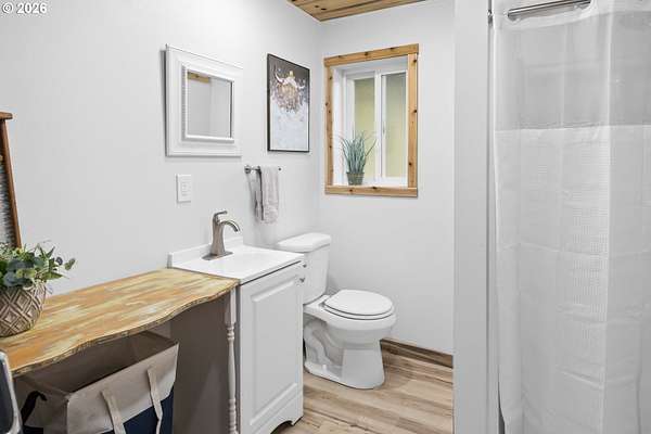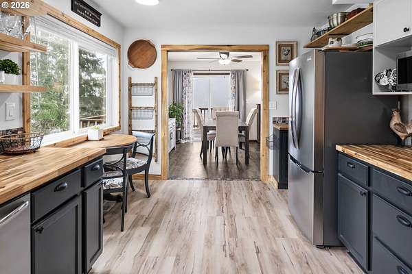 Towards the end of a quiet country road sits your farm life dream. This home sits on 3 acres of gated property and offers flexibility with multiple outbuildings and room for expansion. Inside, she's updated cute as a button. Upstairs the kitchen has quite the refresh with new lower cabinets, refurbished upper cabinets, butcher block countertops, new sink and all new stainless-steel appliances and the main floor full bathroom was completely remodeled around the vintage pink bathtub. This home also has new flooring throughout, a newly installed water filtration system, and all gas appliances including an on-demand water heater, gas dryer and range. The recently rebuilt deck off the dining room overlooks the generous yard, the site of all your future gardens, rescue animals, or whatever your heart desires. Come look, meander the tranquil property, and fall in love.