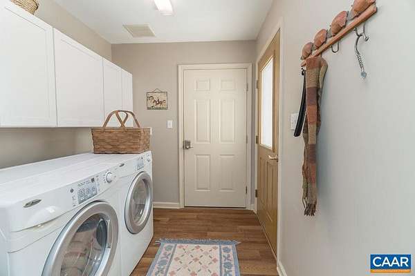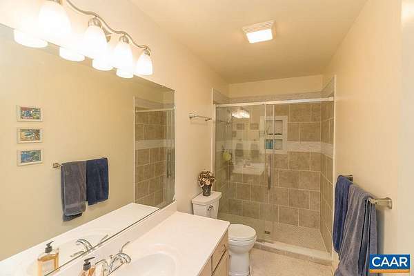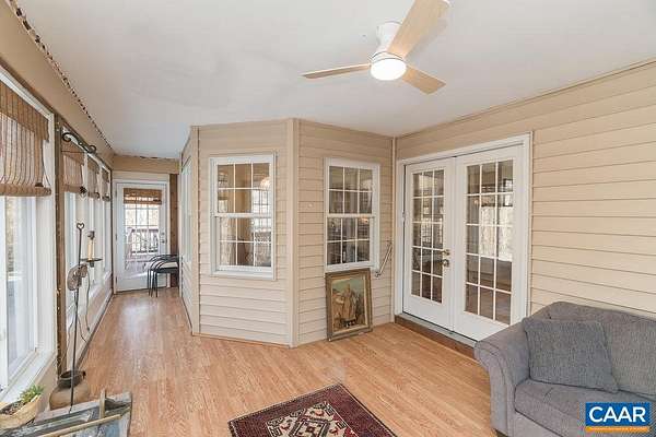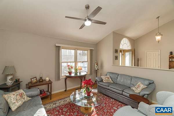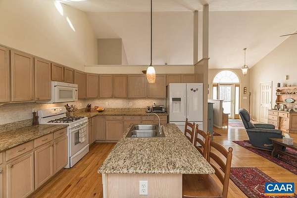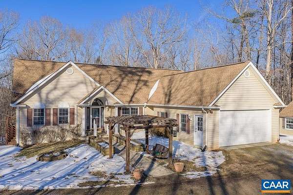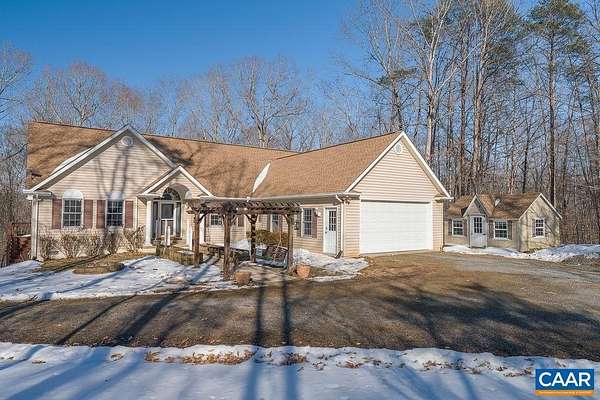 Enjoy one-level living at 9165 Totier Creek Rd in Scottsville! This thoughtfully designed home features vaulted ceilings, rich hardwood floors, and a stunning stone fireplace with gas insert as the focal point of the great room. The spacious kitchen offers granite countertops, a gas range, center island, and large eat-in area with a bright bay window. Relax in the sunroom overlooking the partially cleared, private, backyard, or entertain on one of two rear decks. The primary suite offers private deck access and a generous bath complete with dual vanities, jetted tub, separate shower, water closet, and two large closets. The oversized garage includes built-in cabinetry and storage, and a huge conditioned crawl space provides exceptional additional storage. A conditioned outbuilding is ideal for a studio, office, playhouse, or workshop. Convenient to Scottsville grocery, Main Street shops, and local amenities--with walkable access to the creek. Peaceful country setting with everyday convenience!