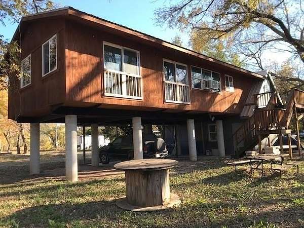 Over and acre and a half with Ninnescah river access to white sandy beaches, legendary fishing, eagles & lots of wildlife. Relax along the river in you own cabin built on pillars that can be used as carports. Weather your using for weekends or full time it's close to town just off Highway 81. Easy access upstairs with large home made elevator. Master bedroom has sliding glass patio doors facing West towards the river just like the living room and great sunsets. This non-conforming 2 bedroom needs second bedroom closet. The kitchen has custom bar in front of Gen-Air stove/grill. Oversized one car garage. All information deemed accurate and reliable, but not guaranteed and is subject to change without notice. Buyer must do own research an due diligence.