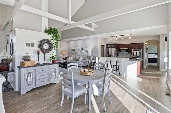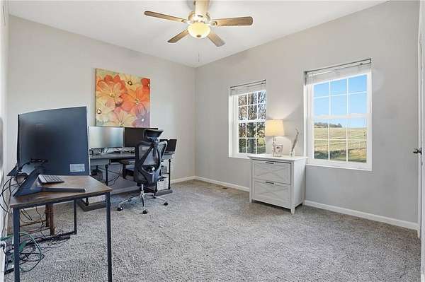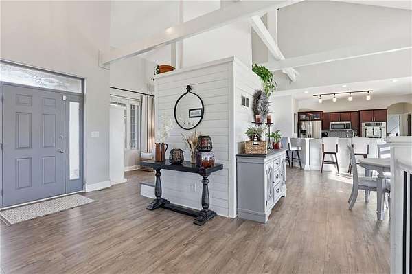 True ranch-style home on just under 5 acres, offering space, privacy, and solid construction. This 5-bedroom, 3.5-bath home features steel framing and a functional reverse 1.5-story layout. The main level showcases vaulted ceilings, an open floor plan, and abundant natural light with scenic views of the surrounding land. The primary suite and two additional bedrooms are conveniently located on the main floor. The kitchen, dining, and living areas flow seamlessly and feature luxury vinyl flooring, granite countertops, tile accents, and stainless steel appliances. The primary suite includes a dual vanity, granite countertops, jetted tub, separate shower, and walk-in closet. The walkout lower level offers two additional bedrooms, one full and one half bath, a large recreation area, and generous storage-ideal for entertaining or extended living arrangements. Enjoy outdoor living from the covered patio overlooking the private, treed acreage. Home features newer roof, HVAC, and hot water heater. Move-in ready, thoughtfully updated, and built to last, this property offers a peaceful country setting with modern comfort.