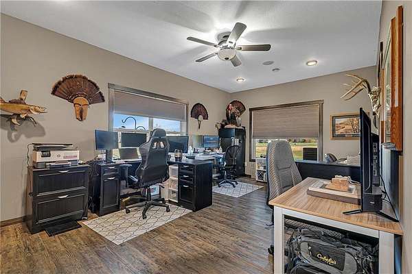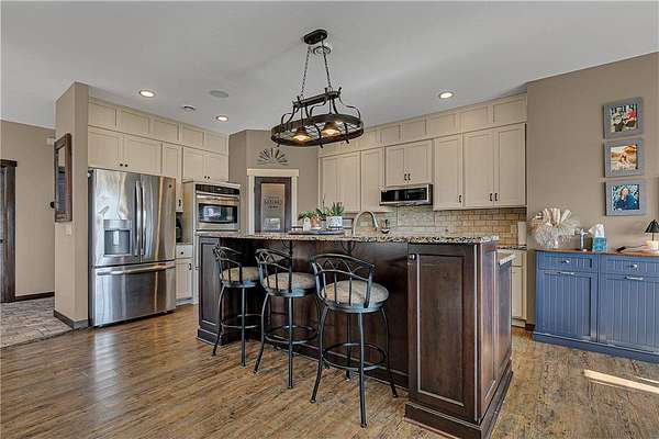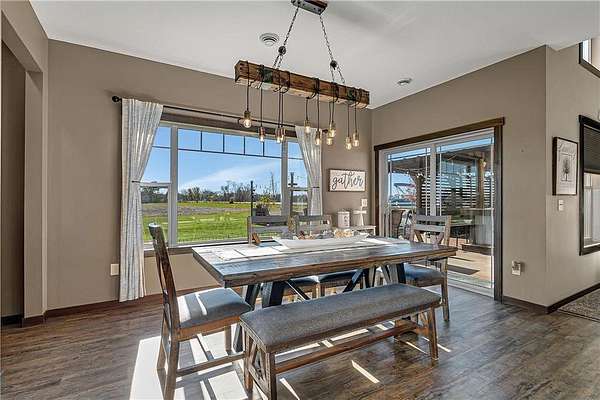 Welcome to this exceptional 4-bedroom, 3.5-bath custom home on over 9 acres on the Sauk River in beautiful St. Joseph! Built in 2018, this thoughtfully designed two story home offers 4,460 sq ft of living space plus a finished & heated 3 stall garage and finished bonus room. The main level features a luxurious primary suite, high vaults in living room, and a large office. The gourmet kitchen is a showpiece with custom cabinetry, granite countertops, a 9ft island, Wolf brand cooktop, double wall oven, and beverage cooler. Upstairs you'll find a spacious family room, 3 bedrooms with walk-in closets, a Jack & Jill bath and vanity counters. The Outdoor living space is made for entertaining with stamped patio, pergola, built-in bar, hot tub, and fire pit overlooking the river. Many upgrades include in-floor heat in home & garage, 400-amp service, surround sound, Lutron smart lighting, Bluetooth speakers, sprinkler system, and more--all within walking distance to a new 95 acre park w/ walking path and a kayak launch.