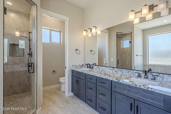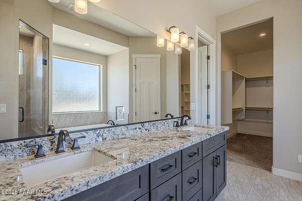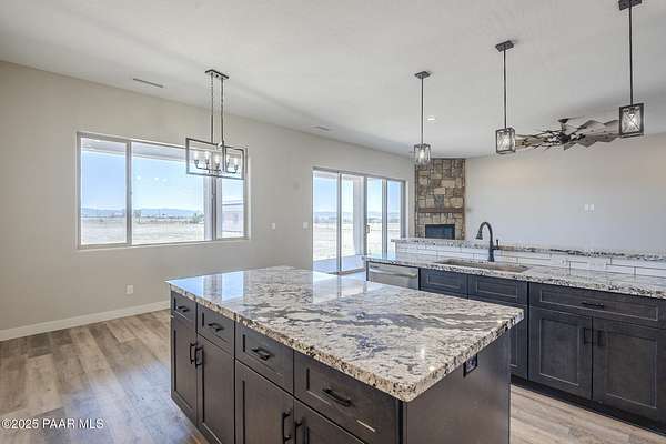 LOW INTEREST ASSUMABLE VA LOAN in wonderful Mingus Meadows! Welcoming entry leads to spacious great room w/ mountain views, gas fireplace to cozy up to in the cold winter months. Gourmet kitchen w/large island, granite counters, & 2 pantries. Formal dining room is great for entertaining. Master suite w/ dual sinks, HUGE walk-in-closet, garden tub, walk-in shower, & private patio access. Additional bedrooms & bath are great for kids, guests or hobby room. Laundry room w/ utility sink. Covered back patio is great to enjoy the surrounding mountain views and the Arizona sunsets. New LVP flooring installed in September. 3 car garage is waiting for all your toys or car collection. Office/storage 16x40 building with water and mini split. Perimeter fence with 3 gates. OWNER/AGENT