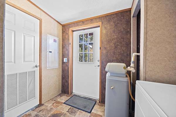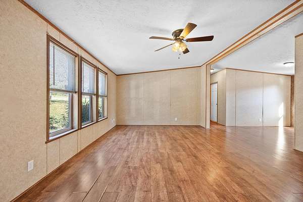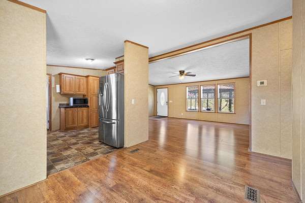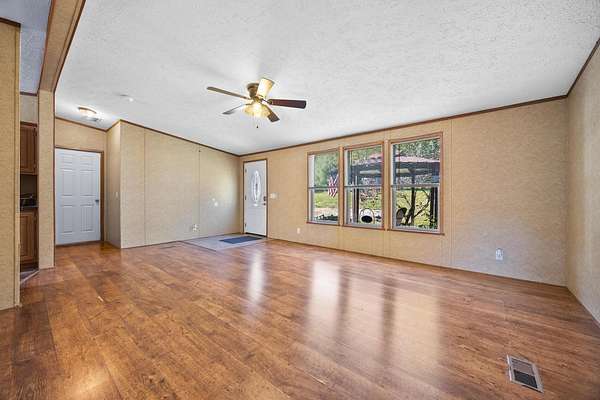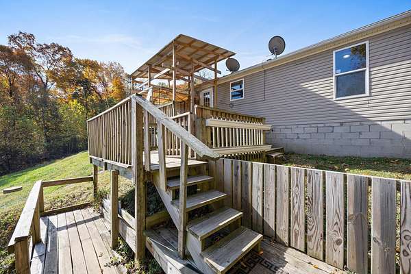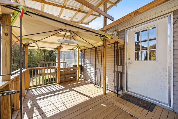 Country living on 2.05 acres with a 3BR/2BA main home plus a separate-entry Mother-in-Law Suite. Main home features an open floor plan, large, updated kitchen with custom hidden pantry. Spacious owner's suite with walk-in closet, and a grand updated bath with shower and garden tub. Two additional bedrooms and full bath. New furnace (2022). Mother-in-Law Suite includes a full kitchen, laundry, 1-bedroom, full bath, and private balcony--ideal for multi-generational living or rental income. Washer and dryers stay. Property offers multi-level decking overlooking serene acreage and a runoff pond, fenced yard, large front deck with gazebo, shed, and a retaining wall (2023) providing extra parking or potential garage site. A versatile property with room to grow and enjoy peaceful country living. A must see!
