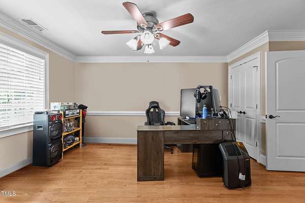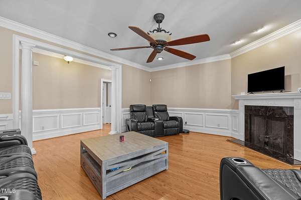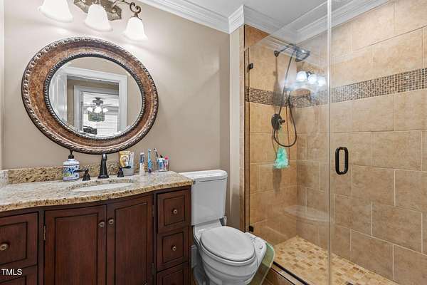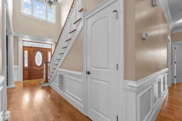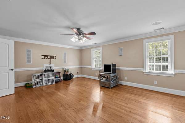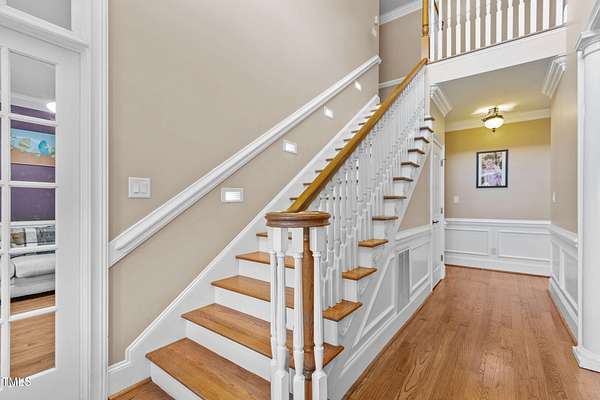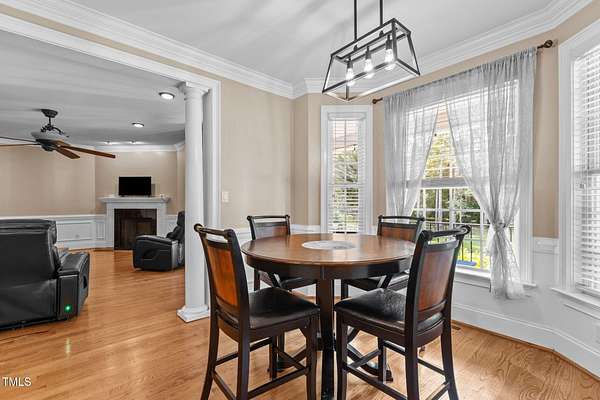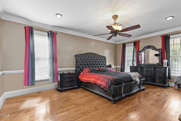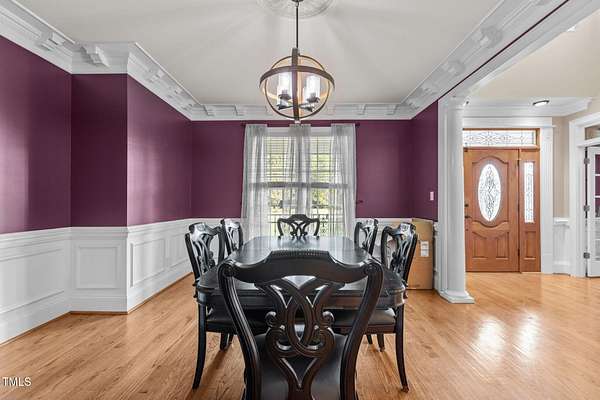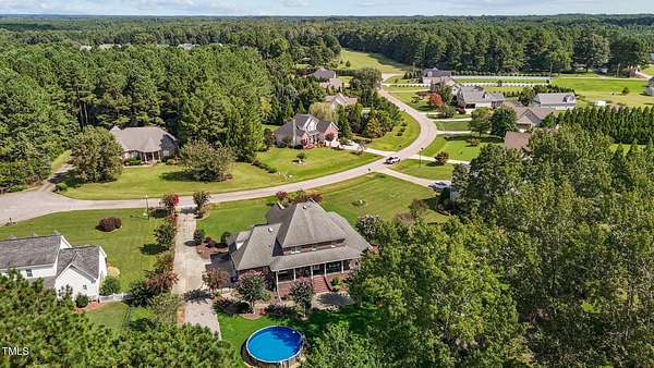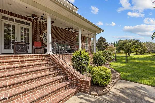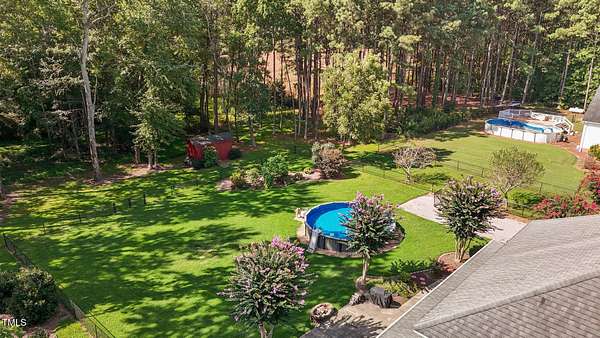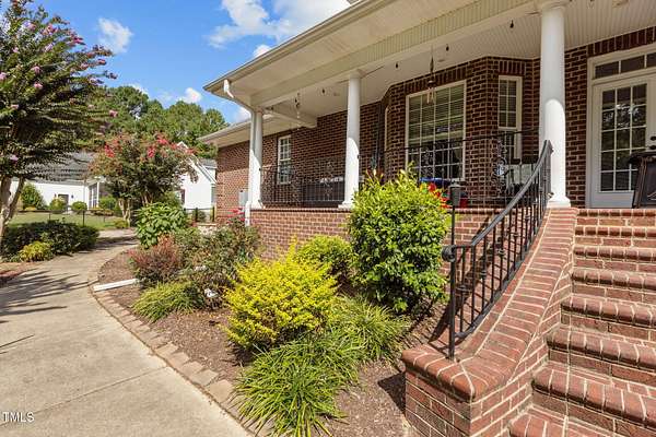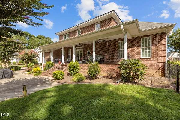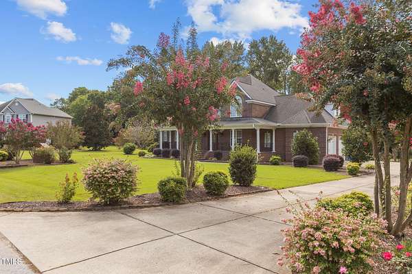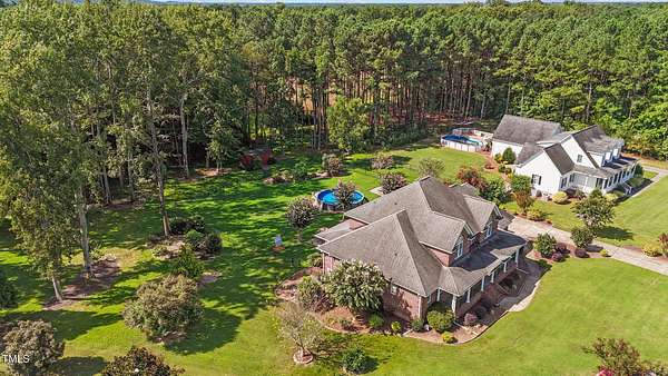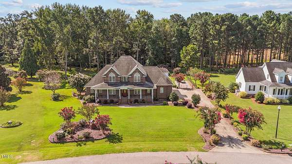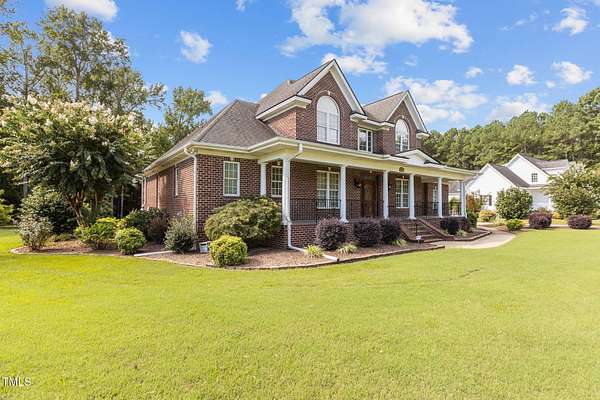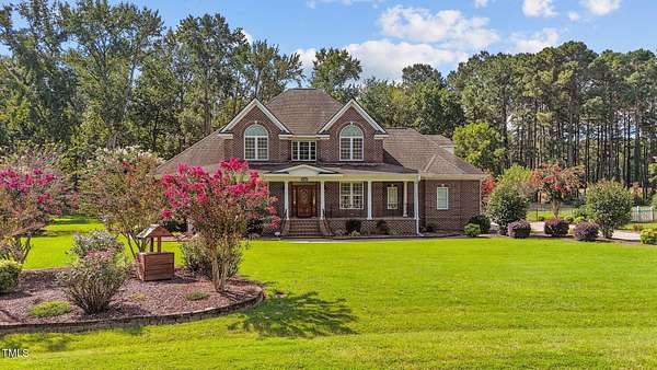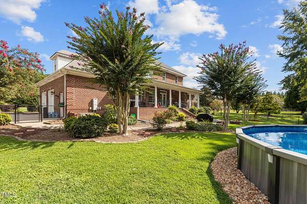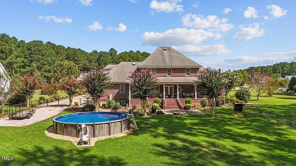 Welcome to 9177 Fox Run Road, a stunning all-brick home in the Fox Chase subdivision in Bailey, NC. Nestled on a beautifully landscaped 1.68-acre homesite with an above-ground pool, this 3,867 sq ft custom built residence combines elegance, function, and quality construction throughout! The heart of the home is the gourmet kitchen, featuring high-end glazed cabinetry with raised panel doors, granite countertops, a gas cooktop, double ovens, under-cabinet lighting, and a large breakfast bar. A bayed breakfast nook overlooks the private backyard, while the formal dining room shines with custom crown molding and an updated chandelier. The first-floor primary suite is a true retreat, offering a spa-like bath with diagonally laid tile floors, a furniture-style vanity with granite countertops, dual sinks, decorative framed mirrors, an oversized custom-tiled shower with dual shower heads, and a raised soaking tub framed by elegant columns. Designed for flexibility, the floor plan includes a main floor study, huge upstairs bonus and rec rooms, and multiple living spaces to fit your lifestyle. A 2-story foyer with custom woodwork, a spacious family room with gas log fireplace and custom mantel, and surround sound with built-in speakers all add to the appeal. Site-finished hardwood floors run throughout both levels - a rare, allergy-friendly feature that enhances the home's warmth and character. Outdoor living is complete with a full front porch and a covered back porch overlooking the black aluminum fenced yard and pool. Call today to schedule a private tour!