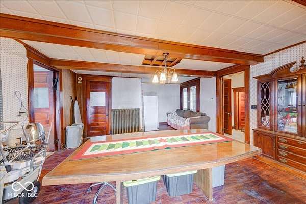 Discover a once-in-a-lifetime opportunity at 9179 N CR 300 W. Built in 1900, this commanding all-brick residence stands as a testament to turn-of-the-century craftsmanship. Spanning an impressive 3,865 finished square feet on a private 11.28-acre lot, this property is waiting for a visionary to polish it back to its original grandeur. Step inside to find a treasure trove of architectural details that are nearly impossible to find today. The home features gorgeous original woodwork, enchanting stained glass details, and rare pivot doors that hint at its historic elegance. With 4 spacious bedrooms and 3 full bathrooms, the layout offers the grand scale needed for a stunning modern farmhouse or historic estate. The grounds are equally impressive, offering a true homestead experience. Enjoy the fruits of the land with an established apple orchard featuring three distinct varieties and heavy-producing walnut trees. While the home requires some TLC, the solid brick construction and acreage provide an incredible canvas. Bring your contractor and your imagination: THIS is the project that becomes a legacy.