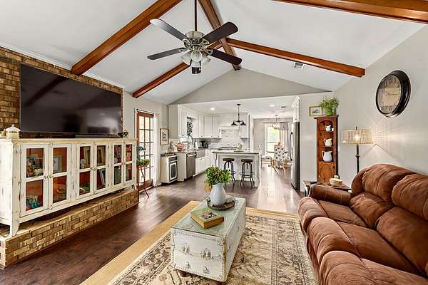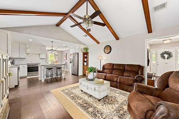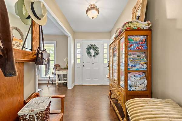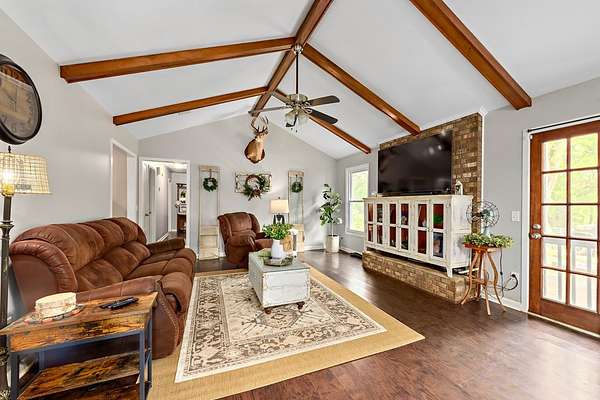 186 acre turnkey farm and recreational tract featuring a 3bd/2bth home, 7 acre stocked pond, and Indian Creek frontage. Offers open ground, hayfield, fenced horse area, timber, and strong deer/turkey hunting. Includes barns with power/water, trail system, and paved road frontage-ideal for full-time living or a weekend retreat.