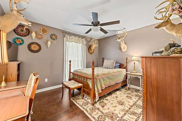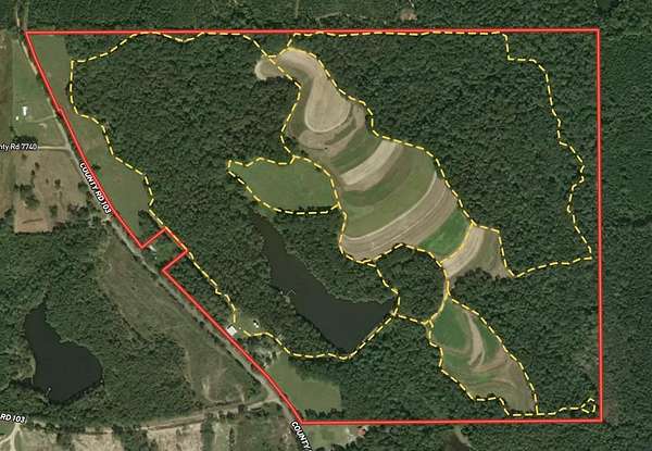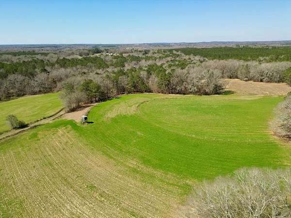 Booker's Indian Creek Tract offers 186 diverse acres with a strong balance of land, water, and improvements. Features include a 1,800+ sq ft modern home (3bd/2bth), a 7 acre stocked pond, and Indian Creek providing year-round water along the east boundary. The property includes 38 acres of open ground ideal for farming, cattle, food plots, or dove hunting, plus a 7 acre hayfield and 3 acre fenced horse area. The remaining acreage is in timber with hardwood bottoms, supporting excellent deer and turkey hunting. A well-established internal trail system allows easy access throughout. Improvements include two barns with power and water, grain silos, and ample storage. The home sits on an elevated site overlooking the pond, offering privacy and scenic views, and is well-suited for full-time living or a weekend retreat. With 3,060 ft of paved road frontage, this property offers both accessibility and privacy. A rare, well-rounded tract in a quiet rural setting.