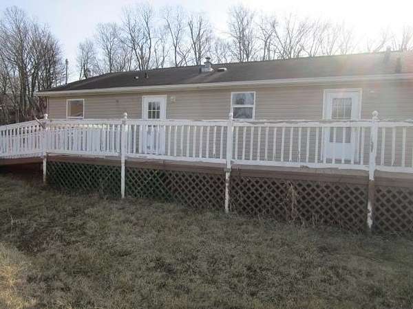 Looking for the perfect Homesteading-Small Farming place to call home? This is it! Modular Home in need your special touches with 3 bedrooms 2 full baths, covered front porch and large deck. The detached "Recreation" building offers many uses. - See the 3 bay metal garage - 52 x 40 with electric, work benches, also 2 metal carports on concrete pads. Your farm animals or horses will love the 4 stall barn with electric and metal roof. ~ The Pavilion is covered, has a fireplace cooking grill, electric and concrete floor + an elevated concrete patio with firepit area. What a neat place to unwind and enjoy the privacy. CONSIDER WEARING HIGH BOOTS OUTSIDE. This home is being sold As-Is. _~_ All offers are placed online by your HUD registered Realtor during Bid Offer Periods. NOTE: This is a HUD owned property, for all details visit HUDhomestore.gov. HUD homes are sold As-is Where-is, Equal Housing Opportunity applies. The seller will make no repairs, no representations or warranties as to the property condition. HUD may contribute up to 3% of Buyer Closing Cost, upon request in the offer. Details have been obtained through public records, use your own due diligence for verification. Deed states there is a ROW shared driveway.