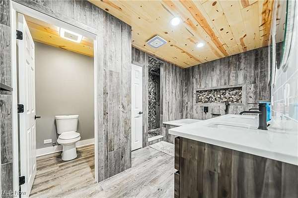 Welcome to your new home, a meticulously maintained and beautifully landscaped 3.7-acre property! As you arrive, you'll be greeted by a new tree-lined driveway leading to a serene, stocked and treated pond. The inviting front porch, covered rear deck, gazebo, patio with built-in features, and outdoor kitchen make this the perfect place for grilling and entertaining. You'll love the 30x50 pole barn - featuring wood interior, half bath, heating and AC, LED lighting, loft area/office and lounge. Inside, the home boasts over 3,300 square feet of living space on the first and second floors. It features 5 bedrooms, 3 full baths, an updated kitchen with quartz countertops and stainless steel appliances, and a fully renovated master suite that you'll fall in love with. The second floor offers 3 bedrooms and a full bath, The lower level provides an additional 1,400 square feet of finished space, including a family room, an additional bedroom or office, and a walkout to the attached 2-car garage. Additional home improvements include a metal roof on both the house and outbuilding, This one-of-a-kind property offers everything a family needs to create lasting memories. Move right in and start enjoying the peace and tranquility you deserve!