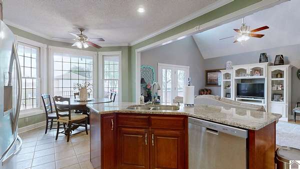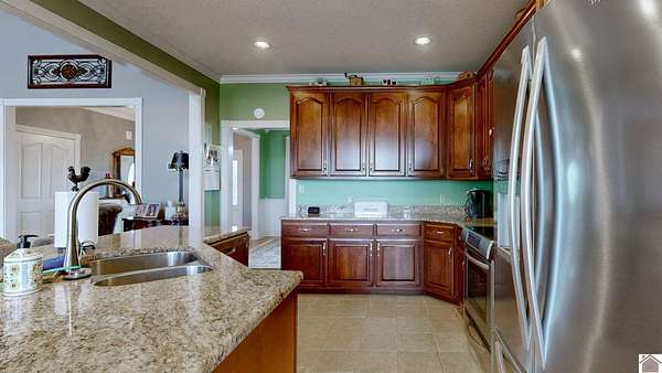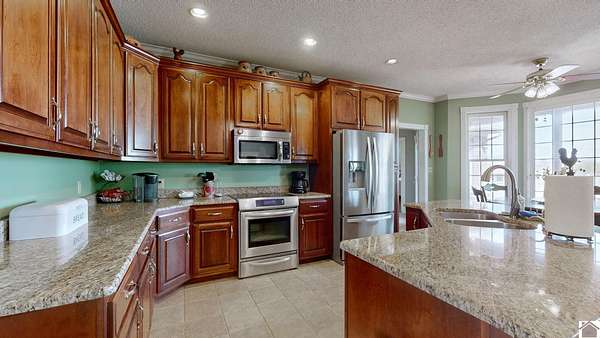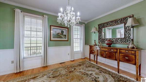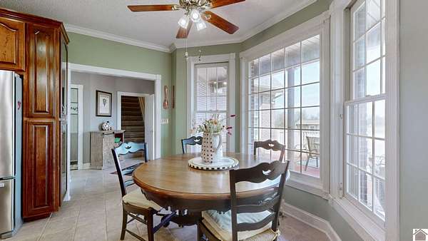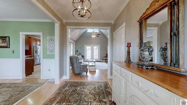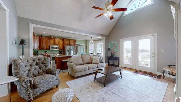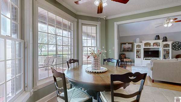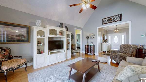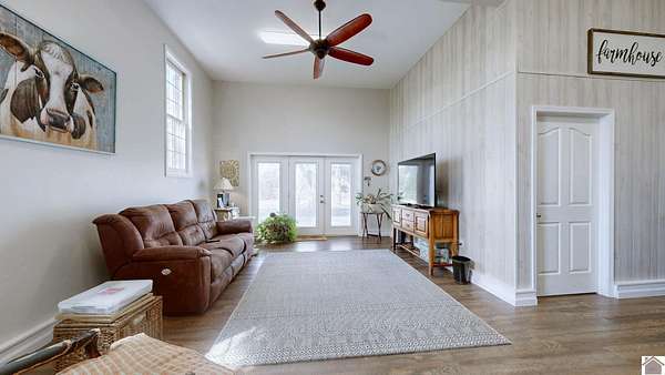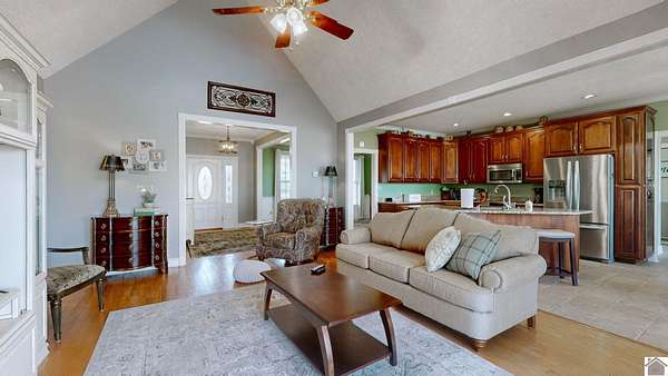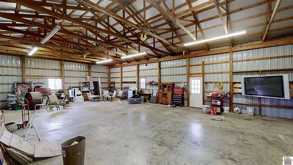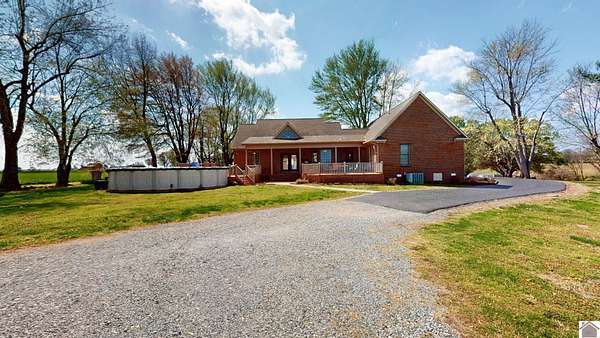 Meticulously maintained 3 bed 3 bath home (Split bedroom floor plan), with bonus room, located just outside of Fancy Farm Ky! As you enter you'll love the open feel from the dining, kitchen, & living rooms. Large living area w/vaulted ceilings giving you an even larger feel. Kitchen features a large island, eat-in breakfast area, stainless appliances, tons of cabinets & counter space, & granite countertops. Spacious primary suite with large bathrm & walk-in closet. Large bedrms 2 & 3 with full bathrm in between. Large bonus room upstairs for potenial 4 bedrm. Attached garage has been converted into a separate living space and has tons of potential for whatever your needs may be (Could be converted back if desired). Step out on the covered front or back porch to enjoy all that nature has to offer. Composite back deck & above ground pool great for entertaining in the warmer months. Detached 48'x30' building with power and water. All of this & more located on 5.17 acres! Don't miss out!