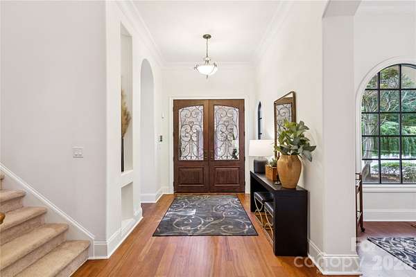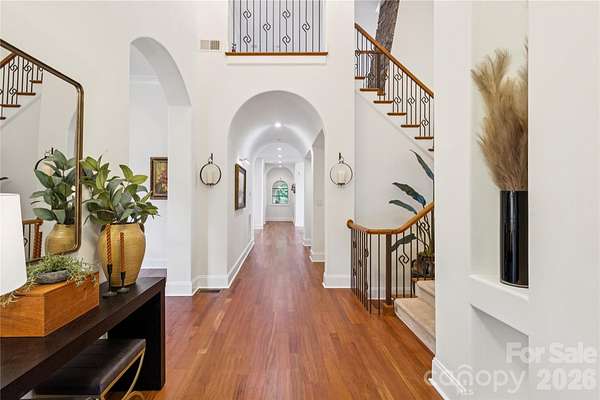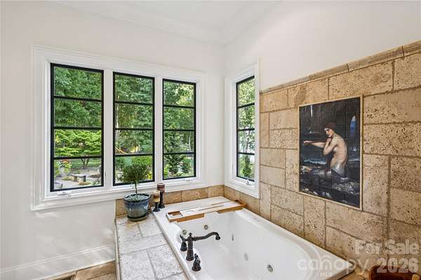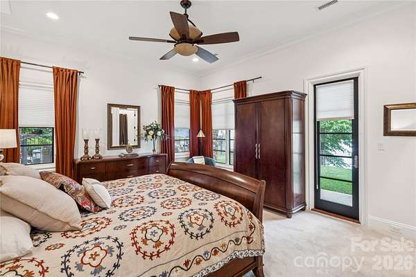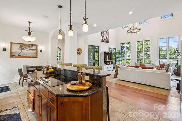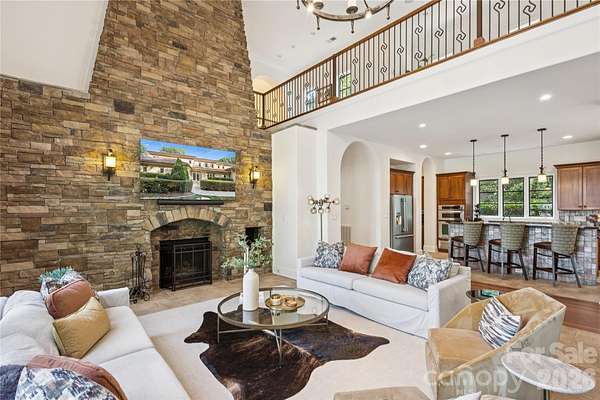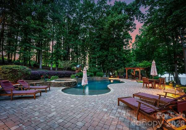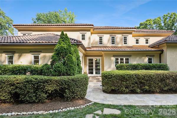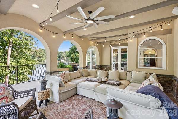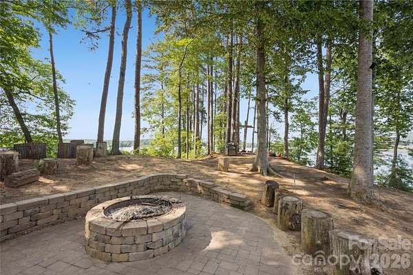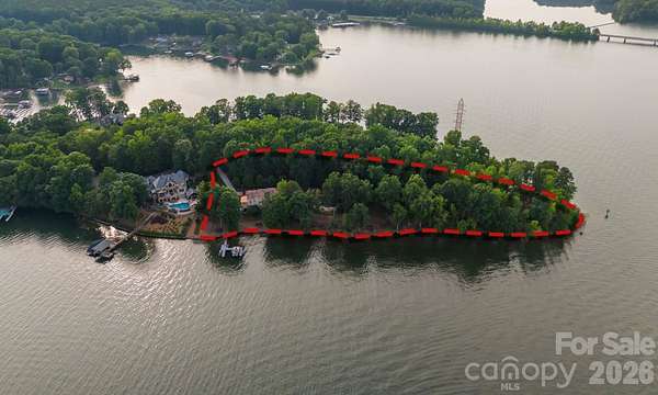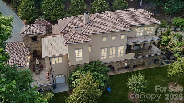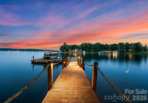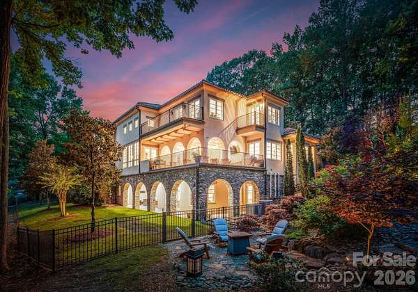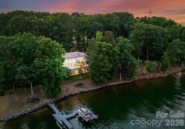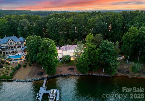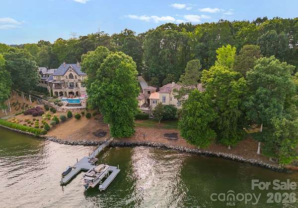 Presenting a rare opportunity to own a magnificent 4-acre waterfront estate on the main channel of Lake Norman. With an impressive 1,200 feet of shoreline, this Mediterranean-style residence offers unparalleled privacy and panoramic water views. The meticulously landscaped grounds feature a luxurious spa pool with a hot tub, a private sandy beach, a premium floating dock, and a serene Japanese garden complete with a waterfall-creating a resort-like oasis perfect for both grand-scale entertaining and tranquil escapes or yoga retreat. Inside, the home's grandeur is immediately apparent with a soaring two-story stone fireplace that serves as the focal point of the sun-drenched great room. The open-concept floor plan is thoughtfully designed for modern living, with arched entries and expansive windows framing the stunning lake vistas. A chef's kitchen, equipped with granite countertops, stainless steel appliances, and a butler's pantry, flows seamlessly into the dining and living areas. The main level primary suite is a true retreat, with lavish bathroom with both indoor and outdoor showers, a jetted tub, and dual vanities. The upper level offers a versatile loft space, ideal for a playroom or billiards room, along with two generously sized bedrooms, each with its own terrace overlooking the lake and pool. The fully finished walk-out basement provides additional living and entertaining space, including a media room, recreation area, and two private guest suites. This exceptional property, complete with a distinctive bell tower and a three-car garage, is conveniently located just minutes from shopping, dining, and major highways for easy airport access. Experience the pinnacle of luxury lakefront living in this one-of-a-kind Lake Norman estate