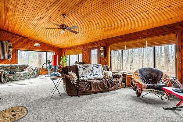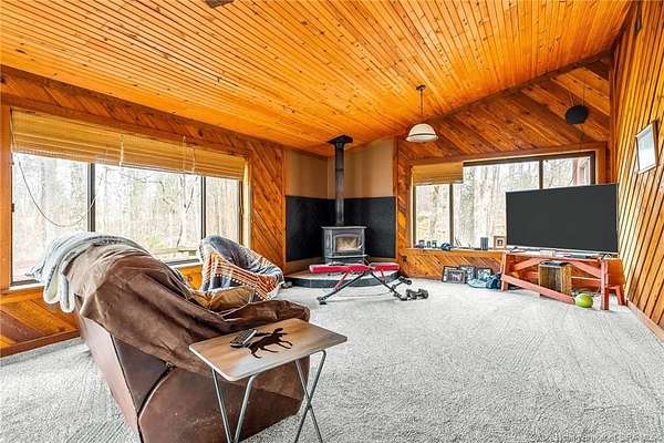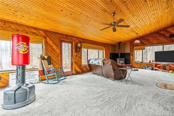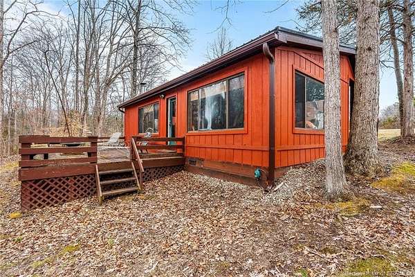 Nine wooded acres in Harrison County is the kind of setting that rarely becomes available, especially when it comes with a home that feels tucked right into the landscape. Tall trees surround the property, creating privacy, quiet, and the kind of space hunters and nature lovers spend years looking for. Inside, the heart of the home is a huge family room lined with windows that pull the outdoors in from every angle. Natural light pours across the space, while a wood stove adds warmth and that unmistakable cabin-style comfort during cooler months. The home offers two bedrooms and two full bathrooms, making it a manageable size for a full-time residence, weekend retreat, or hunting getaway. Whether you're enjoying the view from inside or exploring the wooded acreage outside, this property offers room to breathe and space to make it your own. Properties like this in Harrison County simply don't come along very often.