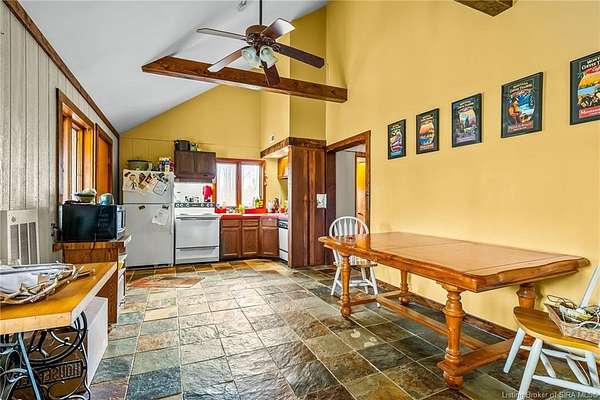 - 1 st Floor Main, 1 st Floor Utility, Attic, Bath Main, Blinds, Built-In Bookcase, Cath/Vaul/Tray Ceil, Ceiling Fan(s), Eat-In Kitchen, Natural Wood Trim, Wood Stove