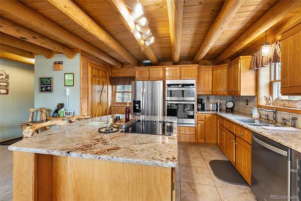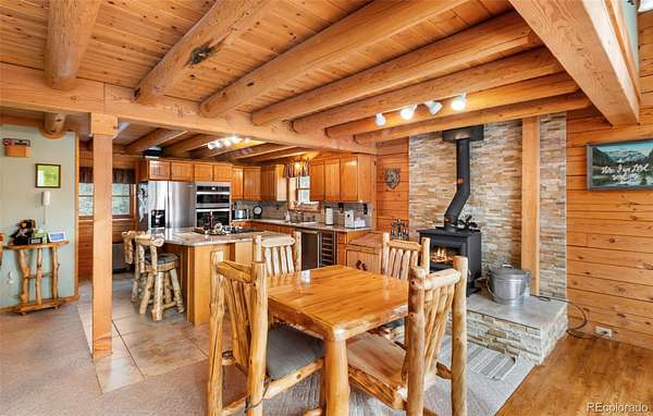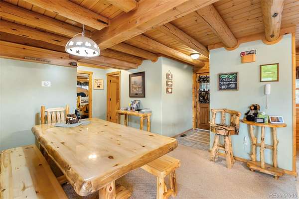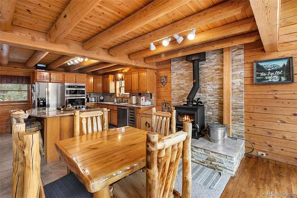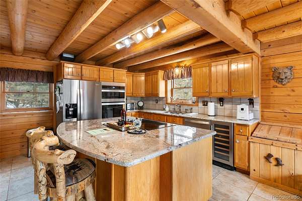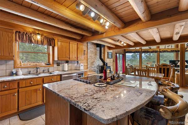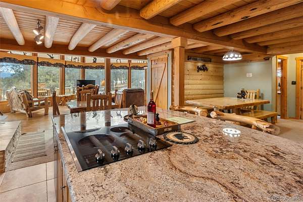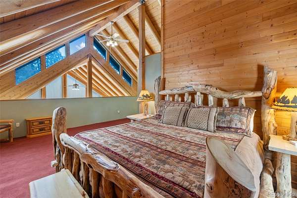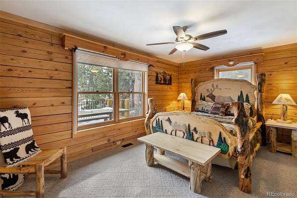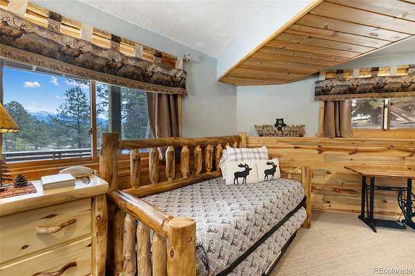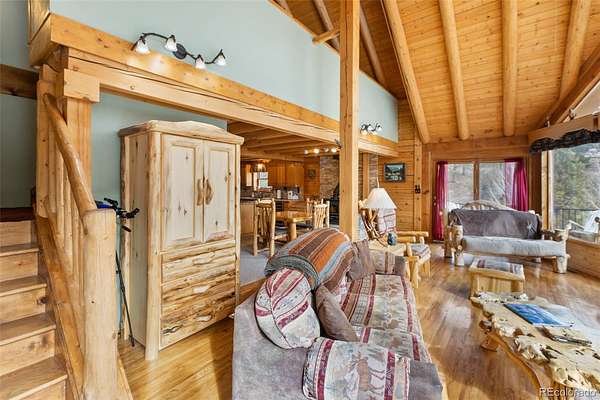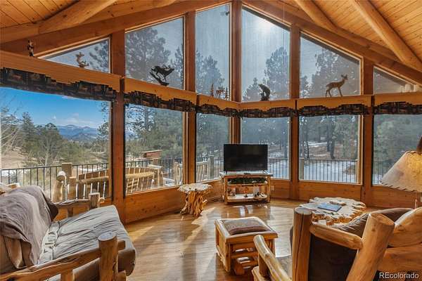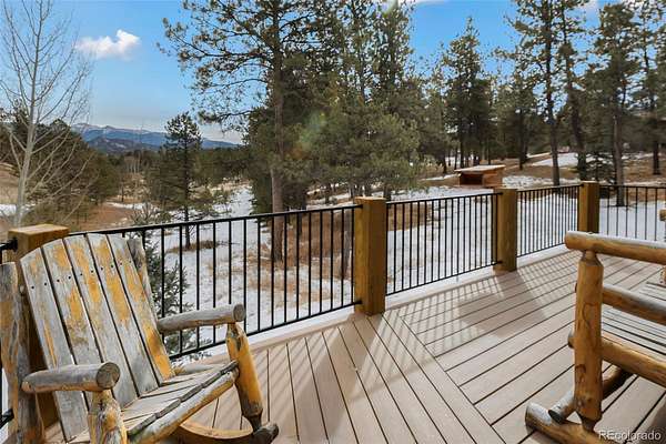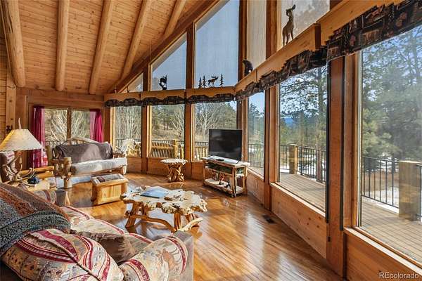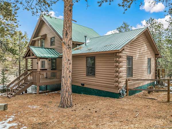Experience the Colorado dream in this spectacular prow-front log home, perfectly positioned on 2.44 private, wooded acres bordering open pasture land. Wildlife abounds here — deer are frequent visitors — and the setting offers complete privacy, with the home not even being visible from the road, providing privacy plus! The dramatic wall of windows in the prow front design frames awe-inspiring views of Pikes Peak, filling the home with natural light and mountain beauty. A cozy Lopi wood stove creates the perfect ambiance for crisp Colorado evenings. The home is being sold fully furnished with gorgeous log furniture that complements the authentic mountain style — truly turnkey for full-time living, a second home, or a vacation rental. (It was a highly successful vacation rental in 2024 and is currently used primarily as a second home.) The lower level features a versatile bonus room that has been used as a fourth bedroom. All bathrooms have been thoughtfully updated, including a stunning lower-level bath with a granite walk-in pebble shower and elegant quartz countertop. Additional features include: A Heated 17x16 workshop , a 17x7 mechanical room with furnace and water heater both less than 10 years old, A Wraparound Trex deck — perfect for entertaining simply soaking in nature’s beauty, a fenced yard area off the deck for pets or little ones, a Primary loft suite with a skylight, walk-in closet, and spacious bathroom, plus there is a Generac generator for added peace of mind! The garage has been partially converted to accommodate the heated workshop, currently functioning as approximately a 1½-car garage. From the moment you walk in, this home embraces you with warmth and character. It’s rare to find a log home that truly checks all the boxes — privacy, views, quality updates, functionality, and charm. This one is truly special. A true Colorado Mountain living gem.