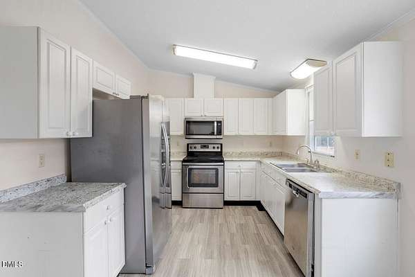 - Double Vanity, Eat-In Kitchen, Entrance Foyer, High Ceilings, Laminate Counters, Separate Shower, Soaking Tub, Vaulted Ceiling(s), Walk-In Closet(s)