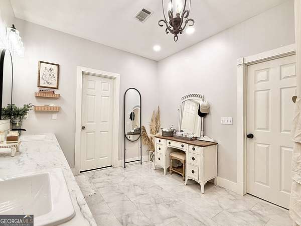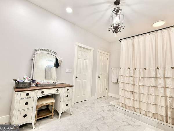 - Double Vanity, High Ceilings, Master On Main Level, Separate Shower, Split Bedroom Plan, Walk-In Closet(s)