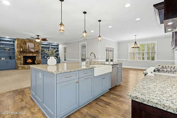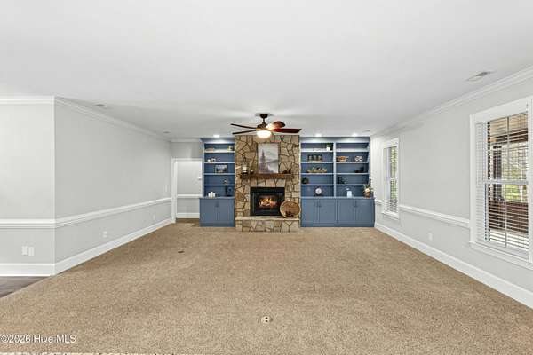 - Blinds/Shades, Bookcases, Ceiling Fan(s), Central Vacuum, Entrance Foyer, Gas Log, Kitchen Island, Master Downstairs, Mud Room, Pantry, Tray Ceiling(s), Walk-In Closet(s), Walk-In Shower, Whole-Home Generator