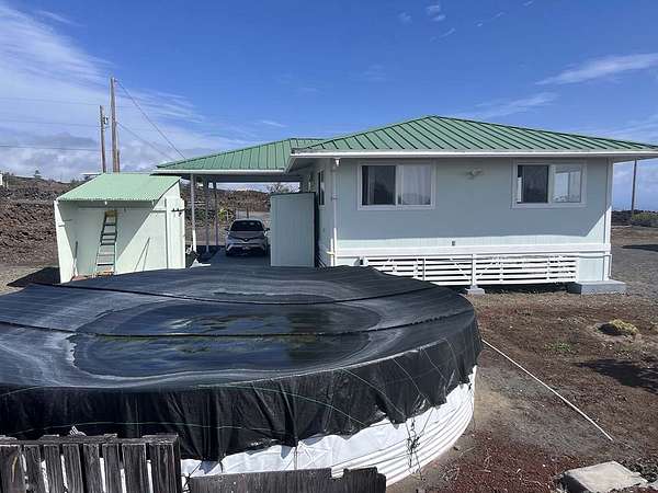 Start your luxurious life in Ocean View Rancho Subdivision! Built in 2006 TURNKEY (including washer, unused new stove oven, Sony TV, Queen size Tempurpedic bed, refrigerator, and extra freezer) home sits on 3 full acres and boasts views of the Pacific Ocean. The sunset in the Ocean is visible 6 months of the year and enjoys sunny weather almost throughout the year. The kitchen has more than an adequate area of cabinetry with concrete countertops. The lot has been nicely cleared with open area for a second home. A 8x8 shed storage is built on the north side of the house and the workshop is on the Ocean side of the house. Manuka Natural Area Reserve is very close to Ocean View. The town center with many conveniences, including a hardware store, restaurants, two grocery stores and service stations is a 3 minute drive away and the town of Naalehu 14 miles away has a health clinic, banking, Elementary, junior high school and a Police Station. The nearest hospital is in Pahala about 28 miles away. The annual property tax is about $1,100, the electric bill with installed Solar System (completely owned) is about $100, and the HOA Road maintenance fee is $250/year.